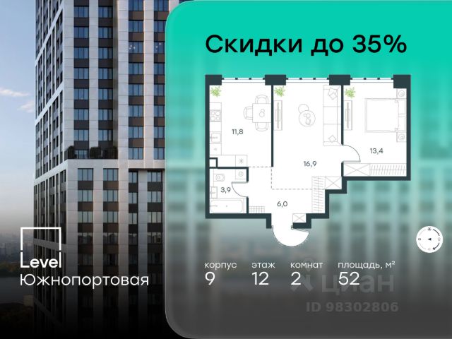 Указанная акционная стоимость доступна при 100% оплате или ипотеке без субсидирования. Цена действует до 31.12.2025 23:49:59. Стоимость без акции 25888890. Старт продаж! Продаётся 2-комнатная квартира от застройщика ГК "КОРТРОС" в жилом комплексе бизнес-класса ULTIMAcity. Квартира расположена на 12 этаже 52 этажного корпуса 2. Общая площадь 62,99 м². Без отделки. В квартире: • Мастер-спальня • Гардеробная • Два сан. узла ULTIMAcity — жилой комплекс бизнес-класса в перспективном районе на юго-востоке Москвы. На его территории появятся 9 башен на 756 этажей, двухуровневый подземный паркинг, собственная инфраструктура, включая детский сад и школу. Всего девелопер благоустроит территорию в 2,6 га. Ближайшая станция метро — "Южный порт". Она откроется в 2028 году и будет находиться в 2-х минутах ходьбы. А прямо напротив расположится остановка водного автобуса-электрохода "Синичка". Дорога от квартала будет удобна и для автомобилистов: - до Кремля — 12 км - до МКАД — 12 км - до выезда на ТТК — 3 км - до Садового кольца — 8 км В двух корпусах первой очереди ULTIMAcity этажностью 45 и 52 реализуется 1 079 квартир с продуманными, рациональными планировочными решениями. В ассортиментной линейке представлены однокомнатные квартиры от 28,2 до 61 кв. м, двухкомнатные лоты от 44,3 до 95,4 кв. м, квартиры с тремя (71 — 115,57 кв. м) и четырьмя спальнями (106,6 — 114,97 кв. м). В экспозиции также есть квартиры с террасами, лоджиями, тремя и четырьмя санузлами, а также с функциональными нишами-кладовыми на кухнях. Запроектированы и эксклюзивные двухуровневые резиденции со вторым светом, в том числе с видом на Москву-реку, площадью от 77,7 до 141,9 кв. м. В рамках проекта запланировано строительство 9 корпусов, школы на 500 учащихся и детского сада на 225 мест. Еще будет создана продуманная инфраструктура для жителей: детские и спортивные площадки, амфитеатр для мероприятий, беседки и теплицы для садоводства, коворкинг, детский клуб и ресторан с открытой террасой. Доступ в жилой комплекс осуществляется по биометрическому контролю - Face ID. Вокруг квартала будет приватная территория с видеонаблюдением и консьерж-сервисом 24/7. Лобби корпусов будут иметь двойные выходы: на улицу и во внутренний закрытый двор.