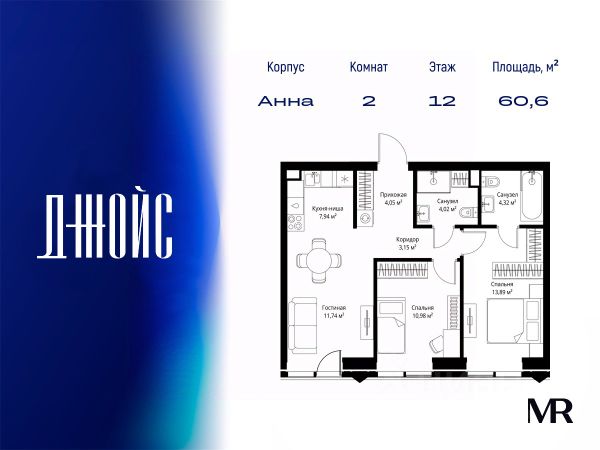 Площадь: 67.7 кв. м. Просторная кухня-гостиная (отличное место для встреч с друзьями) + 2 изолированные спальни