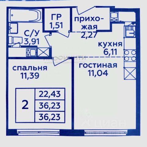 Общая площадь квартиры составляет 58.3 кв. м, + утепленный балкон 5 кв.м. из которых жилая занимает 37 кв. м, а кухня — 13 кв. м. Высота потолков — 2.7 метра.