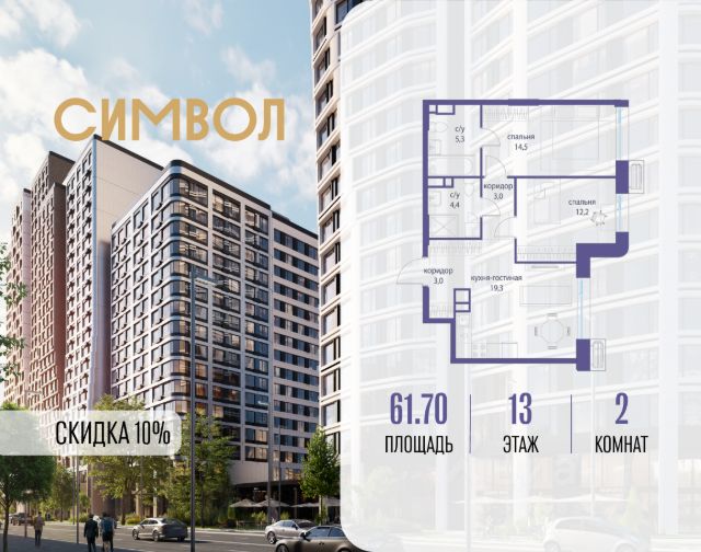 Скидка до 10% действует до 25.12.2025 г. при 100% оплате и не субсидированной ипотеке. Продается 2-комнатная квартира от застройщика: общая площадь 64.90 м², жилая 30.80 м², кухня 19.10 м², 13-й этаж, жилой квартал "Гордость", корпус 36 (секция 5). Срок сдачи: 2 квартал 2029 года. Позвоните сейчас и забронируйте квартиру! Квартал бизнес-класса СИМВОЛ - это городское пространство нового поколения в историческом районе Лефортово, на границе ЦАО, в 2 км от Садового кольца. Бионическая архитектура СИМВОЛА превратила Лефортово в суперсовременное и модное пространство. Из окон, с балконов и террас просторных квартир СИМВОЛА открываются отличные виды на город и новый парк "Зеленая река", "протекающий" через все кварталы комплекса на 2 км. В квартале уже есть все, что нужно для комфортной жизни: кафе и рестораны, супермаркеты и магазины, медицинские и физкультурно-оздоровительные центры, салоны красоты и барбершопы, аптеки и оптики, химчистки, пункты доставки и другие сервисы - всего более 90 действующих объектов внутриквартальной инфраструктуры. Для юных жителей СИМВОЛА открыты детский сад и инженерный лицей при МГТУ им. Баумана. Особенности квартала: • Свой парк "Зеленая Река" - 10 га зелени и развлечений на любой вкус! • Уникальная для Москвы архитектура - Проект создан архитектурной мастерской ATRIUM по дизайн-коду британских бюро LDA Design и UHA London. • Богатая инфраструктура с детскими садами и лицеем им. Баумана, кафе и ресторанами, супермаркетами и аптеками, зоной для фитнеса, бассейном и мед. центром. • Квартиры с панорамными окнами, террасами, ванными с окнами и каминами редких форматов. • Закрытые безопасные зелёные дворы-парки без машин!