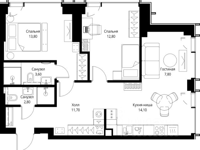 Прямая продажа от застройщика. Продаётся 2-комнатная квартира общей площадью 64.30 м² без отделки в ЖК VEER на 13-м этаже 59 этажного дома. Жилой комплекс бизнес-класса VEER от компании MR — это футуристичный мультиквартал, расположенный в престижной локации на западе Москвы. Благодаря переменной высоте башен — двух 22-этажных, 46-этажной и двух 59-этажных — возникает динамичность в силуэте комплекса, а его яркий образ вносит разноплановость в архитектурный пейзаж района. Расположение и транспортная доступность: • VEER удобно расположен в непосредственной близости от Кутузовского проспекта, обеспечивая быстрый доступ к центральным районам Москвы • Комплекс находится непосредственно напротив самого большого природного заказника в Москве - парка "Долина реки Сетунь", а за семь минут можно доехать до памятника садово-паркового искусства, Троекуровского леса. • Всего в 15 минутах - центр города, самая престижная бизнес-школа управления России "Сколково", дом творчества "Переделкино". • 18 минут пешком до м. "Давыдково" • Открытие новых станций метро в шаговой доступности в будущем Инфраструктура: Разнообразить свой день резиденты VEER смогут также проводя больше времени на свежем воздухе. Двор разделен на 4 зоны разных эмоций и действий, которые пересечены и соединены веерными прогулочными маршрутами: • Спортивная площадка устроена в глубине "Кленовой рощи" • В "Чайном домике" будет создан навес с утеплением для отдыха в любую погоду • Площадки для детей воплотятся в "Волшебный лес" с цветами, зеркалами и световым дизайном • "Центральная площадь" устроена у водного оазиса живописного пруда. Компания MR предлагает своим клиентам специальные условия приобретения квартир в рамках программ ипотечного кредитования от банков-партнеров.