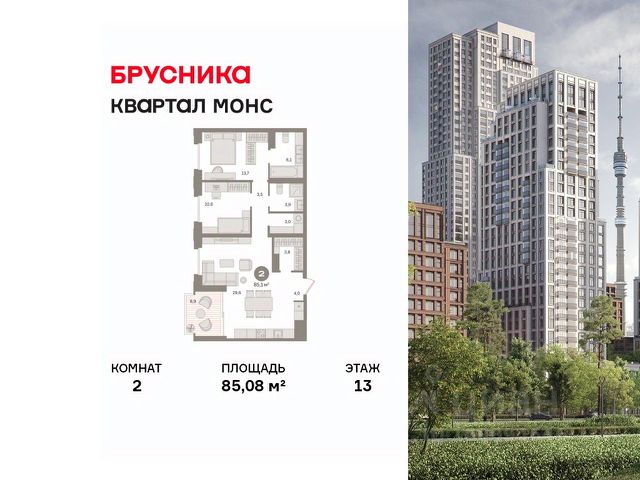 Продаётся 2-комнатная квартира площадью 64.03 кв.м на 13 этаже 46 этажного корпуса Монте Бьянко в квартале небоскребов "Upside Towers". В квартире отделка White-box, c видом на Звездный бульвар, Ольгинский храм, Останкинскую Башню, ВДНХ. Номер квартиры Г1303. Upside Towers - технологичный квартал строится в динамично развивающемся Бутырском районе, в 3 мин. от метро, в 5 мин. от ТТК. На территории 7 га возводится 5 высотных башен от 19 до 58 этажей, названных в честь главных вершин земли. Квартиры с панорамными окнами в пол, высокими потолками и современными инженерными решениями. Благоустроенная зеленая территория включает: приватные дворы, природный комплекс, прогулочный бульвар, ландшафтный парк 2,5 га с сенсорным садом и многофункциональными игровыми и спортивными площадками. В корпусе откроется смотровая площадка для резидентов с панорамными видами на город, парки, Останкинскую башню, ВДНХ, Ботанический сад и Москву-Сити. На первых этажах корпуса Монте Бьянко разместятся: фитнес студия, салон красоты, центр превентивной медицины, образовательные классы, книжный магазин, аптека, фермерская лавка, а также келлеры для хранения сезонных вещей. В приватном закрытом дворе разместятся разнообразные площадки для прогулок, игр и отдыха. Визитной карточкой двора станет уникальная биометрическая игровая пещера со сказочными тоннелями, горками и космическими "мягкими" камнями с неизведанных планет. Планету Земля дети смогут исследовать в павильоне круглый год: объемная крыша укроет от солнца и дождя. Игровая пещера будет реализована в стиле "эмоциональная архитектура". Большое внимание в проекте уделяется созданию социальной инфраструктуры. В стилобатной части, между корпусами "Атлас" и "Олимп" разместится уникальное пространство закрытый клуб для жителей квартала Upside Club площадью 2 000 кв. м. Здесь разместятся: каминный зал с роялем, многофункциональная детская зона c двухуровневым игровым оборудованием для малышей и дошкольников, плей-рум для подростков, домашний кинотеатр, коворкинг, переговорные и лектории. На 47 этаже башни "Атлас" откроется SKY SPA Relax с расслабляющей атмосферой, джакузи, сауной, залами для релаксации и йоги. Собственники квартир смогут в любое удобное для них время забронировать посещение спа-зоны через смарт-приложение. На крыше стилобата разместится всесезонная BBQ патио-зона с верандой и закрытыми помещениями для приготовления и отдыха. Покупая квартиру даже самого минимального размера в Upside Towers, вы получаете в пользование 2 000 м² бесплатных общественных пространств. В рамках проекта строится государственная школа и детский сад, разместится более 15 000 кв.м. коммерческой инфраструктуры. Насыщенная социальная инфраструктура формирует множество сценариев для жизни на территории квартала. В Upside Towers применяются лучшие технологии и практики, чтобы обеспечить высшее качество жизни: Воздух, не уступающий по качеству горному, обеспечит приточно-вытяжная вентиляция. Пятиступенчатая очистка воды с со