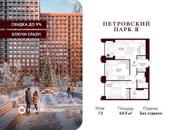 Дом сдан. Ключи в день покупки! В продаже 2-комнатная квартира площадью 69.90 м² с предчистовой отделкой на 13 этаже 49 этажного дома в корпусе Кристал. ЖК Симфония 34 - концептуально новый жилой комплекс премиум-класса с подземной парковкой, состоит из четырех башен высотой 36 - 54 этажа. Квартиры сдаются с базовой (предчистовой) отделкой MR BASE или дизайнерской чистовой отделкой MR READY. Высота потолков 3 - 6 метров, окна высотой до 2,6 м. Более 100 кладовых в подземной части ЖК и более 500 на этажах. Безопасность - Система контроля входа на территорию комплекса, биометрия - Система автоматического водяного пожаротушения и противопожарного водопровода, система пожарной вентиляции - Доступ на парковку при помощи системы распознавания автомобильных номеров, карточка для контроля доступа резидентов - Система видеонаблюдения - Круглосуточная связь через приложение, телефон, голосовые сообщения с охраной, консьержем, call-центр. Расположение Пешком - 6 минут до метро "Дмитровская" - 15 минут до Тимирязевского парка На машине - 5 минут до Савеловского вокзала и Аэроэкспресса в Шереметьево - 10 минут до Москва-Сити и Садового кольца Благоустройство - 70% территории отведены под зеленые насаждения и ландшафтный дизайн - Приватный Японский сад - Детские площадки с зонированием по возрасту - Clubhouse для резидентов - Wellness & SPA - Зона для пикника, зона с гамаками - Центральное лобби, ресторан, коммерческие помещения - Дополнительный вход/выход на территорию комплекса Окружение - В 10 минутах от Симфония 34 находится дизайн-завод Flacon, где регулярно проходят культурно-образовательные и развлекательные мероприятия - Тимирязевский парк расположен в 850 м. Площадь парка 232 га - Рядом расположен парк "Дубки", площадью 16,5 га. - В 15 минутах расположен Хлебозавод 9. Здесь находятся шоурумы брендов, кафе разных кухонь мира, образовательные проекты и площадки для мероприятий Компания MR предлагает своим клиентам специальные условия приобретения квартир в рамках программ ипотечного кредитования от банков-партнеров.