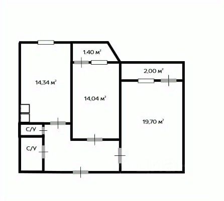 жилая 33,5 кв.м., в том числе, комнаты 20,4 кв.м. и 13,1 кв.м.,