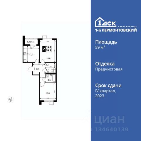 Прямая продажа от застройщика! Жилой Комплекс класса Комфорт Плюс. Продаётся 2-к квартира номер 780 общей площадью 59.6 кв.м. на 13-м этаже 24 этажного здания. Отделка Whitebox. Цена с учётом скидки. Особенности квартиры: - Просторная спальня, в которой можно разместить большую кровать. - Распашная планировка - отличное сочетание удобства и свободы. - Раздельный санузел - больше удобства для всех членов семьи. - Линейная кухня - функциональность и практичность в одном решении. - Ниша под шкаф - компактное и удобное место для вещей. - Кладовая - дополнительное пространство для хранения. - Лоджия - уютное место для отдыха и тишины. Квартира с предчистовой отделкой (White box). Вам не придется заниматься черновыми и трудоёмкими работы, а чистовую отделку и дизайн - сделайте на свой вкус. Информация о комплексе: Ощущение уютного дома должно начинаться с подъезда. Мы постарались предусмотреть все нюансы, чтобы наши лифты отвечали самым строгим современным требованиям. Двор без машин, закрытое, безопасное, охраняемое место с удобным доступом для вашего авто, более чистый воздух и гарантированное место для стоянки - и это далеко не преимущества наличия подземного паркинга. А наличие кладовых позволит вам поддерживать идеальный порядок и уют в вашей квартире! "1-й Лермонтовский" расположился недалеко от уже сложившегося зеленого окружения - Люберецкого парка и Жулебинского лесопарка, переходящего в природно - исторический парк "Кузьминки". Если вы предпочитаете активный семейный отдых на свежем воздухе - в округе мест для него предостаточно. С востока он граничит со столичным районом Некрасовка. С северной стороны - с развитым современным микрорайоном "Красная Горка". Удачное расположение дарит жильцам возможность передвижения как на своем автомобиле, так и на общественном транспорте. Транспортная доступность: В шаговой доступности ж/д станция "Люберцы-1". 5 минут на автомобиле до станций метро "Некрасовка", "Котельники", "Лермонтовский проспект" Внутренняя инфраструктура: Свободно перемещайтесь по внутренней территории в безбарьерной среде! На территории комплекса созданы все условия как для активного образа жизни, так и для спокойного времяпрепровождения: - игровые площадки для детей разного возраста. - площадки воркаута, спортивные комплексы с зонами для детского и взрослого спорта. - зоны отдыха с пешеходными дорожками и аллеями. Также, к вашим услугам: 4 общеобразовательные школы, 7 детских садов, спортивные и танцевальные, школы, поликлиники, множество магазинов и супер-маркетов, включая Ашан и несколько крупных ТЦ в шаговой доступности.