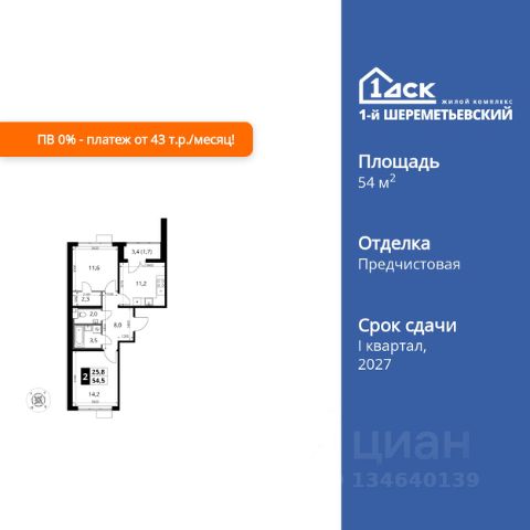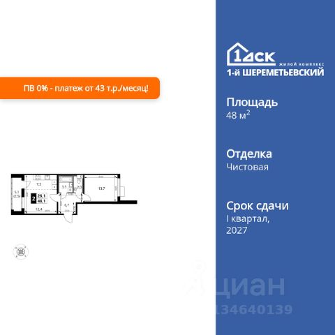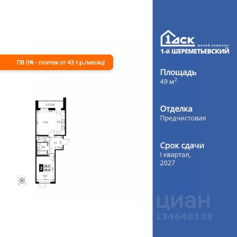 Прямая продажа от застройщика! Жилой Комплекс класса Комфорт Плюс. Продаётся 2-к квартира номер 918 общей площадью 51.3 кв.м. на 13-м этаже 16 этажного здания. Отделка Whitebox. Цена с учётом скидки. Особенности квартиры: - Просторная спальня, в которой можно разместить большую кровать. - Линейная планировка - максимальная функциональность и удобство. - Увеличенная ширина окна/окон - больше света и визуального простора. - Раздельный санузел - больше удобства для всех членов семьи. - Можно оборудовать 2 или более рабочих места - пространство для нескольких человек. - Можно оборудовать рабочее место - комфорт для работы и учёбы. - Линейная кухня - функциональность и практичность в одном решении. - Гардеробная - удобство для хранения и организации вещей. - Лоджия - уютное место для отдыха и тишины. Квартира с предчистовой отделкой (White box). Вам не придется заниматься черновыми и трудоёмкими работы, а чистовую отделку и дизайн - сделайте на свой вкус. Информация о комплексе: ЖК 1-й Шереметьевский расположен в самом центре Подрезково, от него всего 6 минут пешком до одноименной станции ж/д и планируемой к открытию МЦД-3. В комплексе яркие и уютные, лобби, большая колясочная, лапомойка. Благодаря гостевому санузлу на 1 этаже прогулки станут по-настоящему долгими. Два лифта пассажирский и грузовой.Во всех корпусах 1-го Шереметьевского там устроены кладовые, а в корпусах 3-5 есть подземный паркинг. В ЖК 1-й Шереметьевский разнообразие площадей и планировок. Большие кухни-гостиные: в них два окна или больше. Во всех квартирах площадью от 40 кв.м. и выше спроектировано 2 санузла. Большие остекленные лоджии с отделкой. Система Умная квартира, реализованная в 1-м Шереметьевском. В каждой квартире установлены датчики протечек и запорные вентили с электроприводом, которые самостоятельно перекрывают воду в случае аварии. Мобильное приложение управляет группами электропотребителей: даже если вы забыли утюг включенным, можно обесточить его дистанционно. Транспортная доступность: - Общественный транспорт: До ближайших станций метро Планерной и Войковской около 40-50 минут на автобусе. 6 минут до ЖД станции Подрезково (МЦД-3) - Личный автотранспорт: Удобный выезд на Ленинградское шоссе позволяет быстро добираться до МКАДа и в центр Москвы, до платной трассы М11 и в аэропорт Шереметьево. 3 минуты до Ленинградского ш. 10 минут до платной трассы М11 15 минут до МКАД 20 минут до ст. м Войковская 25 минут до ст. м Планерная Внутренняя инфраструктура: 1-й Шереметьевский не только сокращает время, которое вы будете проводить в дороге. Но и предпринимает многое, чтобы вы меньше ездили и чаще ходили. На первых этажах корпусов разместятся фрешмаркеты и пункты выдачи маркетплейсов, салоны красоты и химчистки, кофейни и пекарни всё, что необходимо изо дня в день, но не заслуживает отдельной поездки на машине или такси. В квартале будут построены собственные школа и детский сад. Школа рассчитана на 1100 уч