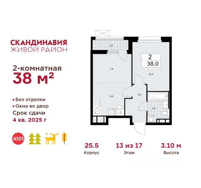 Продается 2-комн. квартира, с отделкой в ЖК "Новые Ватутинки. Квартал у реки". Общая площадь: 55.1 кв.м., жилая: 24.9 кв.м., площадь кухни: 13.5 кв.м. Этаж: 13. Район расположен всего в 14 километрах от МКАД по Калужскому шоссе, в центральной части Новой Москвы. Добраться сюда можно на автобусах и маршрутках от станций метро "Ольховая", "Теплый Стан" и "Бульвар Адмирала Ушакова". Время в пути от "Теплого Стана" и "Ольховой" занимает в среднем до 20 минут, даже в часы пик. В 2025 году рядом начнется строительство новой станции метро "Десна" (Троицкая линия), которая будет находиться в пешей доступности. Благодаря удачному расположению и развитой инфраструктуре Новые Ватутинки становятся одним из культурных и образовательных центров Новой Москвы. Строительство нового микрорайона началось с трех жилых корпусов, оснащенных подземными паркингами, индивидуальными кладовыми и коммерческими помещениями на первых этажах. Заречный имеет два удобных выезда на Калужское шоссе, что обеспечивает свободный проезд без заторов. В будущем жители также смогут пользоваться станцией метро "Десна", выбрав общественный транспорт. В районе предусмотрено строительство двух образовательных комплексов с детскими садами и школами, поликлиники и торгового центра Сквозь весь микрорайон — от будущей станции метро до набережной и парка "Андерсен" — протянется пешеходный бульвар длиной 1,5 км с уютными скверами, мини-площадями и садами. Архитектурная концепция предусматривает постепенное снижение этажности ближе к бульвару, создавая приятную для жизни и прогулок городскую среду. Принцип "город в гармонии с природой" реализован через дворы без машин и безбарьерное пространство на всей территории. Внутренние дворы будут предназначены для тихого отдыха и детских игр, а активные зоны разместятся на крупных плейхабах и в общественных пространствах. "Андерсен" станет центром активного досуга: здесь запланированы вело- и пешеходные маршруты, спортивные площадки, зоны для индивидуальных тренировок на свежем воздухе, а также места для рыбалки, сапбординга и тюбинга. Квартирный фонд отличается разнообразием планировок и продуманной эргономикой: просторные квартиры, большие лоджии, по две ванные комнаты. Свободные планировки позволят легко зонировать пространство под личные нужды — создать уютную спальню, рабочее место или гостиную. В цокольном этаже предусмотрены кладовые для хранения сезонных и крупных вещей, а также подземный паркинг с индивидуальными и семейными машино-местами. Спуститься к автомобилю можно прямо из квартиры — на лифте. Проект включает систему видеодомофонии: жители смогут получать уведомления о визитах гостей в режиме онлайн, открывать входную дверь удалённо, сохранять снимки с панели вызова, а также при желании — подключить наблюдение за камерами в лифтах через мобильное приложение. Выдача ключей в 2027г.