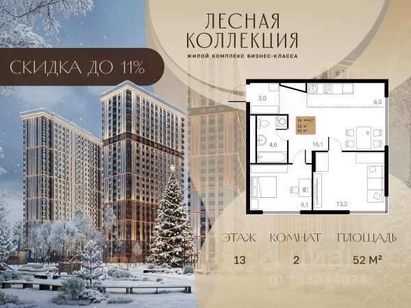 Скидка до 11% при 100% оплате в феврале. Старт продаж в новом жилом комплексе Лесная Коллекция! Продажа напрямую от застройщика. 2-комнатная квартира на 13-этаже, площадью 52-квм. Лесная Коллекция это продуманный жилой комплекс для тех, кто хочет жить в комфортной городской среде и при этом быть рядом с природой. Удачное расположение, развитая инфраструктура и закрытая территория делают проект удобным для повседневной жизни. Удобная локация и транспорт • Быстрый выезд на Путилковское шоссе • Близость станции метро "Планерная" • Три железнодорожные станции рядом: Химки, Левобережная, Ховрино • Более 40 автобусных маршрутов Локация позволяет легко добираться как в центр города, так и в соседние районы. Территория и окружение • Соседство с престижным районом Куркино • Закрытая благоустроенная территория без сквозного движения • Пространства для прогулок и занятий спортом • Двор примыкает к лесному массиву • Архитектура комплекса выдержана в сдержанном, респектабельном стиле • До 70% окон ориентированы на парк Квартиры и планировки • Удобные и функциональные планировочные решения • Формат комфорт-класса по разумной цене • Максимум естественного света за счёт удачного расположения корпусов Инфраструктура внутри комплекса • Детский сад на территории на 140 мест • МФЦ для решения повседневных вопросов • Коммерческие помещения на первых этажах • Магазины, кафе и салоны красоты прямо в доме • Собственный паркинг рядом с домом Всё необходимое рядом • 78 муниципальных и 42 частных детских сада • 40 школ, включая гимназии и лицеи • 6 колледжей и техникумов • 5 вузов поблизости • Крупные торговые центры и рынки в удобной доступности О застройщике Проекты застройщика "Град Девелопмент" — это более 600 тыс. кв. м реализованной недвижимости, включая клубные форматы и жильё бизнес-класса. Компания известна качеством строительства и соблюдением сроков.