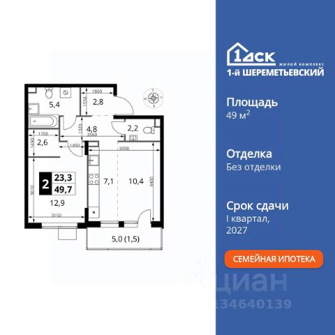Прямая продажа от застройщика! Жилой Комплекс класса Комфорт Плюс. Продаётся 2-к квартира номер 513 общей площадью 49.4 кв.м. на 13-м этаже 16 этажного здания. Отделка Whitebox. Цена с учётом скидки. Особенности квартиры: - Просторная спальня, в которой можно разместить большую кровать. - Распашная планировка - отличное сочетание удобства и свободы. - Раздельный санузел - больше удобства для всех членов семьи. - Евроформат - просторное и удобное жилье с отличной планировкой. - Можно оборудовать рабочее место - комфорт для работы и учёбы. - Кухня-гостиная - идеальное пространство для встреч с близкими. - Возможность добавить спальное место - дополнительный комфорт для гостей. - Просторная лоджия - идеальное место для уютных вечеров. Квартира с предчистовой отделкой (White box). Вам не придется заниматься черновыми и трудоёмкими работы, а чистовую отделку и дизайн - сделайте на свой вкус. Информация о комплексе: ЖК 1-й Шереметьевский расположен в самом центре Подрезково, от него всего 6 минут пешком до одноименной станции ж/д и планируемой к открытию МЦД-3. В комплексе яркие и уютные, лобби, большая колясочная, лапомойка. Благодаря гостевому санузлу на 1 этаже прогулки станут по-настоящему долгими. Два лифта пассажирский и грузовой.Во всех корпусах 1-го Шереметьевского там устроены кладовые, а в корпусах 3-5 есть подземный паркинг. В ЖК 1-й Шереметьевский разнообразие площадей и планировок. Большие кухни-гостиные: в них два окна или больше. Во всех квартирах площадью от 40 кв.м. и выше спроектировано 2 санузла. Большие остекленные лоджии с отделкой. Система Умная квартира, реализованная в 1-м Шереметьевском. В каждой квартире установлены датчики протечек и запорные вентили с электроприводом, которые самостоятельно перекрывают воду в случае аварии. Мобильное приложение управляет группами электропотребителей: даже если вы забыли утюг включенным, можно обесточить его дистанционно. Транспортная доступность: - Общественный транспорт: До ближайших станций метро Планерной и Войковской около 40-50 минут на автобусе. 6 минут до ЖД станции Подрезково (МЦД-3) - Личный автотранспорт: Удобный выезд на Ленинградское шоссе позволяет быстро добираться до МКАДа и в центр Москвы, до платной трассы М11 и в аэропорт Шереметьево. 3 минуты до Ленинградского ш. 10 минут до платной трассы М11 15 минут до МКАД 20 минут до ст. м Войковская 25 минут до ст. м Планерная Внутренняя инфраструктура: 1-й Шереметьевский не только сокращает время, которое вы будете проводить в дороге. Но и предпринимает многое, чтобы вы меньше ездили и чаще ходили. На первых этажах корпусов разместятся фрешмаркеты и пункты выдачи маркетплейсов, салоны красоты и химчистки, кофейни и пекарни всё, что необходимо изо дня в день, но не заслуживает отдельной поездки на машине или такси. В квартале будут построены собственные школа и детский сад. Школа рассчитана на 1100 учеников. В ней будут 25-метровый бассейн и просторный атриум, медиа