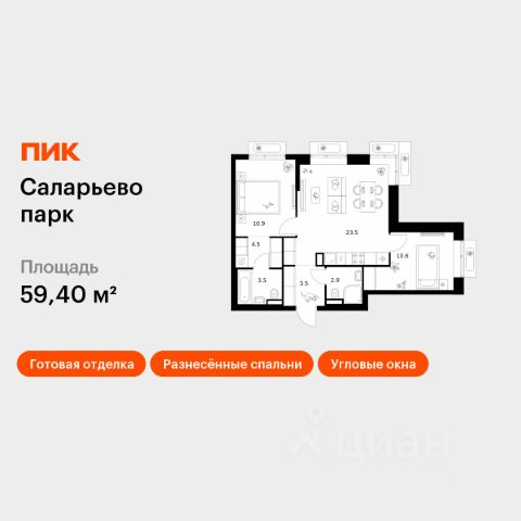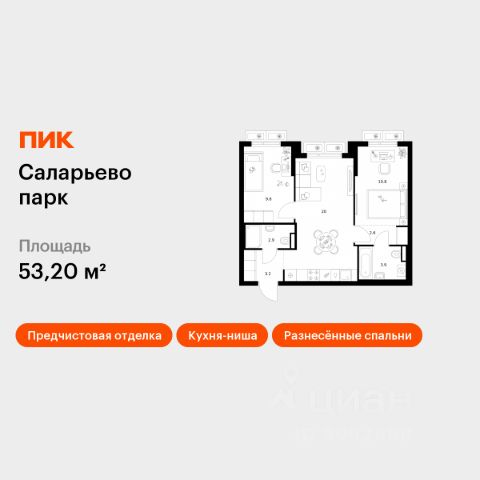 Продаётся 2-комн. квартира площадью 50,9 кв.м на 13 этаже 18 этажного дома (Корпус 74.1, Секция 1) проекта ПИК Саларьево парк. Светлый просторный подъезд на уровне земли, функциональная планировка, большие окна, c отделкой. Жилой район "Саларьево парк" расположен в Новой Москве, в четырёх километрах от МКАД по Киевскому шоссе. Две станции метро: "Саларьево" и "Филатов луг", — находятся в пешей доступности от проекта. Дойти до них можно за 510 минут. В квартале уже создана качественная среда, где есть абсолютно всё для полноценной жизни, работы и отдыха. Благодаря удобному расположению проекта всё важное будет рядом: детские сады, школы, кафе и рестораны, шопинг в торговых центрах, фитнес и даже аэропорт. Все корпуса в квартале гармонично сочетаются, образуя единую городскую среду. Между собой их объединяет невысокая этажность и натуральная цветовая гамма. Здесь приятно гулять и проводить время на улице всей семьёй. В "Саларьево парке" создана уникальная образовательная среда, включающая в себя шесть школ, рассчитанных на 6 250 учеников. Две из них уже открыты, их посещает 2 300 детей. Также на территории "Саларьево парка" находится 12 детских садов, один из которых с бассейном. Сейчас уже открыты 7 садов. В "Саларьево парке" открыта уникальная игровая площадка — PlayHub "Оригами". Здесь есть ручей, горка-труба и рельефные холмы. Взрослые смогут отдохнуть в уютном кафе, пока дети играют. Также на территории проекта есть SportHub — большая спортивная зона, разделённая по интересам и возрастам. Здесь можно заниматься разными видами спорта: футболом, баскетболом, волейболом и стритболом. Зимой центральную часть площадки превращают в каток. Во дворах-парках жилого квартала есть места для отдыха, детские и спортивные площадки. На первых этажах домов расположены магазины, кафе и полезные сервисы. Также вблизи проекта есть несколько масштабных торговых центров. До ТЦ "Саларис" пять минут пешком, до "Рио", Metro Cash & Carry и "Леруа Мерлен" — пять минут на автомобиле. Артикул 1006197 (Застройщик ООО "Специализированный Застройщик "Тирон")
