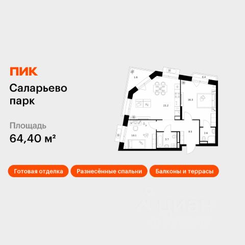 Продаётся 2-комн. квартира площадью 50,9 кв.м на 13 этаже 18 этажного дома (Корпус 74.1, Секция 1) проекта ПИК Саларьево парк. Светлый просторный подъезд на уровне земли, функциональная планировка, большие окна, c отделкой. Жилой район "Саларьево парк" расположен в Новой Москве, в четырёх километрах от МКАД по Киевскому шоссе. Две станции метро: "Саларьево" и "Филатов луг", — находятся в пешей доступности от проекта. Дойти до них можно за 510 минут. В квартале уже создана качественная среда, где есть абсолютно всё для полноценной жизни, работы и отдыха. Благодаря удобному расположению проекта всё важное будет рядом: детские сады, школы, кафе и рестораны, шопинг в торговых центрах, фитнес и даже аэропорт. Все корпуса в квартале гармонично сочетаются, образуя единую городскую среду. Между собой их объединяет невысокая этажность и натуральная цветовая гамма. Здесь приятно гулять и проводить время на улице всей семьёй. В "Саларьево парке" создана уникальная образовательная среда, включающая в себя шесть школ, рассчитанных на 6 250 учеников. Две из них уже открыты, их посещает 2 300 детей. Также на территории "Саларьево парка" находится 12 детских садов, один из которых с бассейном. Сейчас уже открыты 7 садов. В "Саларьево парке" открыта уникальная игровая площадка — PlayHub "Оригами". Здесь есть ручей, горка-труба и рельефные холмы. Взрослые смогут отдохнуть в уютном кафе, пока дети играют. Также на территории проекта есть SportHub — большая спортивная зона, разделённая по интересам и возрастам. Здесь можно заниматься разными видами спорта: футболом, баскетболом, волейболом и стритболом. Зимой центральную часть площадки превращают в каток. Во дворах-парках жилого квартала есть места для отдыха, детские и спортивные площадки. На первых этажах домов расположены магазины, кафе и полезные сервисы. Также вблизи проекта есть несколько масштабных торговых центров. До ТЦ "Саларис" пять минут пешком, до "Рио", Metro Cash & Carry и "Леруа Мерлен" — пять минут на автомобиле. Артикул 1006197 (Застройщик ООО "Специализированный Застройщик "Тирон")