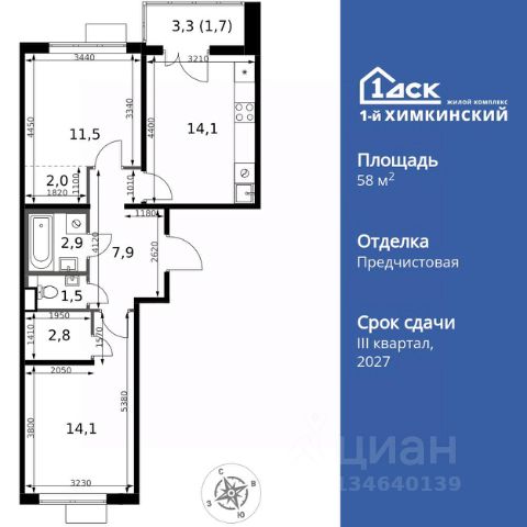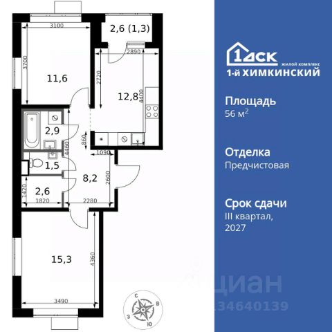 Прямая продажа от застройщика! Жилой Комплекс класса Комфорт. Продаётся 2-к квартира номер 609 общей площадью 43.6 кв.м. на 13-м этаже 16 этажного здания. Отделка Whitebox. Цена с учётом скидки. Особенности квартиры: - Мастер-зона с гардеробной. Просторное место для отдыха и удобного хранения вещей. - Линейная планировка - максимальная функциональность и удобство. - Раздельный санузел - больше удобства для всех членов семьи. - Евроформат - просторное и удобное жилье с отличной планировкой. - Гардеробная - удобство для хранения и организации вещей. - Ниша под шкаф - компактное и удобное место для вещей. - Тёплая лоджия - пространство для отдыха в любое время года. Квартира с предчистовой отделкой (White box). Вам не придется заниматься черновыми и трудоёмкими работы, а чистовую отделку и дизайн - сделайте на свой вкус. Информация о комплексе: Квартал класса комфорт плюс, где современное городское пространство граничит с удивительной природой вокруг. 1-й Химкинский расположен на территории в 102 га и органично вписан в природное окружение Химкинского леса и канала им. Москвы. В проекте предусмотрена богатая коммерческая инфраструктура с собственным торговым центром, общеобразовательные учреждения и социальные объекты. Изюминкой жилого комплекса будут спортивно-оздоровительный комплекс с термами и SPA и семейный парк развлечений. Транспортная доступность: ЖК "1-й Химкинский" дает возможность выбрать любой способ передвижения как до города, так и до самых разных объектов, которые могут представлять интерес для его жителей. Не важно, какой способ передвижения вы предпочитаете, успевать всегда и везде можно вне зависимости от выбора транспорта. - 8 мин. пешком (800 м) до остановки "Золотая Арка" -10 мин пешком (1 км) до остановки "Поворот на Ивакино" Внутренняя инфраструктура: - Безопасность: закрытые дворы без машин, безбарьерная среда и сквозные подъезды, камеры на детских площадках с возможностью трансляции на смартфоне - Идеальный отдых в кругу семьи: семейный парк развлечений на территории, торговый центр (2-х этажный) общей площадью более 8 тыс. кв. м с фудкортом - Образование: 3 детских сада и современная муниципальная школа на 2450 мест - Спортивная среда: закольцованный веломаршрут с навигацией, спортивный комплекс с термами, закрытый тренажерный зал и зоны ворк-аута - Социальные объекты: поликлиника со станцией скорой помощи, пожарное депо - Подземный паркинг и кладовые помещения на -1 этаже, станция техобслуживания и автомойка на территории