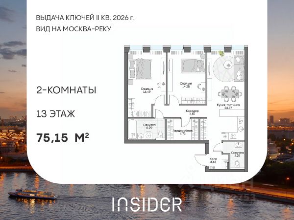 Планировка: кухня оснащенная всей необходимой техникой и мебелью площадью 13,35 кв.м., Функциональная спальня с гардеробной комнатой площадью 9+2,3 кв.м, а так же две изолированные комнаты площадью 9 и 12.6, кв.м, которые можно использовать как детские, гостевые или разместить кабинет, два санузла и просторная прихожая.