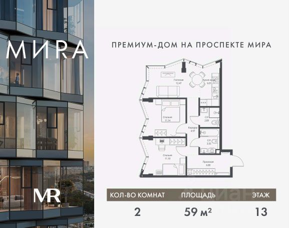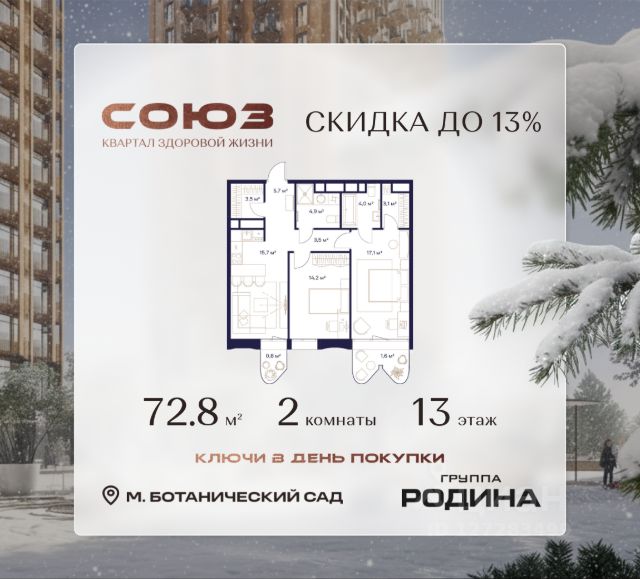 Прямая продажа от застройщика. Продаётся 2-комнатная квартира общей площадью 64.22 м² без отделки в доме премиум-класса МИRА на 13-м этаже 24 этажного дома. Квартира расположена в корпусе 3. Дом премиум-класса МИRA это: • Спокойный район с богатой историей и сложившейся инфраструктурой • Авторская архитектура на стыке классики и современности • Вход в парк прямо из жилого комплекса • Панорамные виды на Яузу, парки, ВДНХ и скульптуру "Рабочий и колхозница" • Удобные сервисы и безопасность для каждого резидента Расположение: Жилой квартал расположен в Алексеевском районе на северо-востоке Москвы, на второй линии домов, таким образом вы сможете дистанцироваться от шума и суеты проспекта Мира, но при этом будете жить недалеко от этой важной городской магистрали. Прямо у дома: • Парк Акведук • Река Яуза • Памятник "Рабочий и колхозница" Пешком: • 16 мин м. ВДНХ На автомобиле: • 12 мин ТТК • 15 мин Садовое кольцо • 12 мин Национальный парк "Лосиный остров" Благоустройство: Концепция благоустройства от бюро "ДРУЖБА" разработана в стиле "Лесная тропа". В уютном дворе расположились словно затерянные в лесу, площадки для отдыха. Они разделяются островками с травами, кустарниками, крупными камнями и деревьями, между которыми проходят узкие песчаные тропинки с деликатной подсветкой по вечерам. Центральной точкой притяжения для жителей станет главная площадь с фонтаном, которая открывается сразу из двух входных групп. Внутренний двор МИRA: • Детская площадка с зонами для игр малышей до трех лет и детей более старшего возраста • Спортивная площадка с профессиональным оборудованием для тренировок • Декоративные перголы • Воздушный арт-объект с подсветкой, похожий на облако • Чайный домик, где в отдельном отапливаемом павильоне можно в любое время года попить кофе с соседями или устроить камерное семейное чаепитие • Зоны для работы и отдыха с гамаком под навесом, скамейками и креслами Инфраструктура и окружение: В Алексеевском районе есть огромные благоустроенные парки, магазины, гимназии с высоким рейтингом и филиалы ВУЗов, частные и государственные детские сады, модные кофейни и фитнес-центры. В квартале МИRА предусмотрены: • 2 ресторана с видом на парк Акведук • 3 кафе • фитнес-студия • подземный паркинг на 330 машино-мест Компания MR предлагает своим клиентам специальные условия приобретения квартир в рамках программ ипотечного кредитования от банков-партнеров.