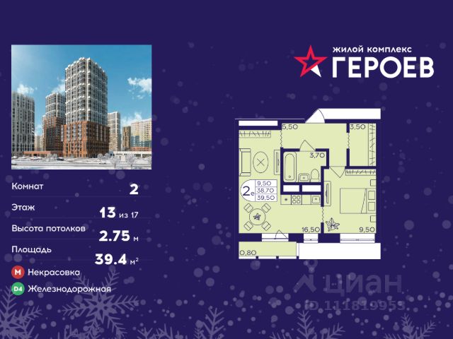 Продаётся 2-комнатная квартира в формате евро 32.80 кв. м. в жилом комплексе "Героев" в Балашихе, Железнодорожный. Квартира расположена на 13 этаже 407 корпуса. В наличии квартиры с отделкой. Всего 40 минут до центра Москвы. При покупке квартиры в сданном доме ключи выдаются сразу! Жилой квартал "Героев" - это уютный проект для семей с детьми. В квартале созданы все условия для досуга всех возрастов: игровые и спортивные площадки, места для отдыха и прогулочные зоны. За 15 минут можно дойти от дома до Ольгинского лесопарка, популярного места для отдыха на свежем воздухе. На территории жилого комплекса уже открыт детский сад на 250 мест и началось строительство еще одного - для 220 малышей, а также школы для 1320 учеников. Рядом работают магазины, кафе, супермаркеты, пункты выдачи. Преимущества: • В уютных светлых квартирах с просторными кухнями-гостиными удобно встречать гостей и проводить время наедине друг с другом. • Благодаря увеличенному остеклению в комнатах много света. • Квартиры продаются с отделкой, можно заселяться сразу после получения ключей.
