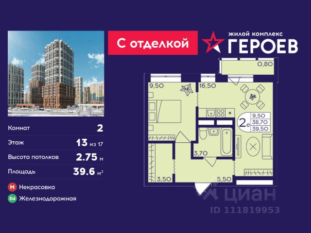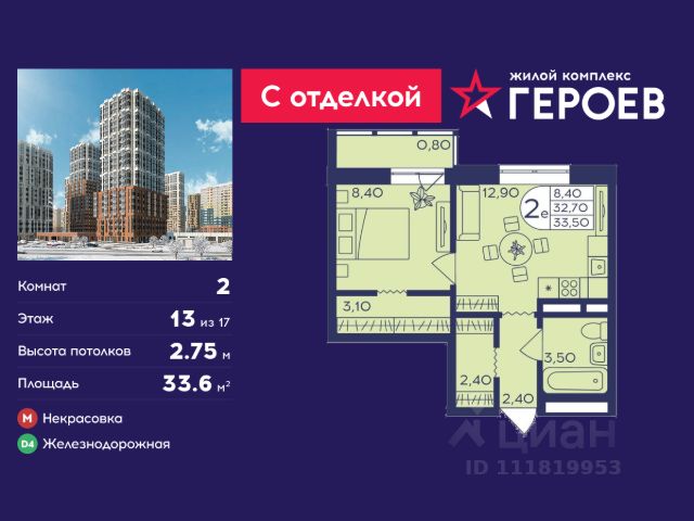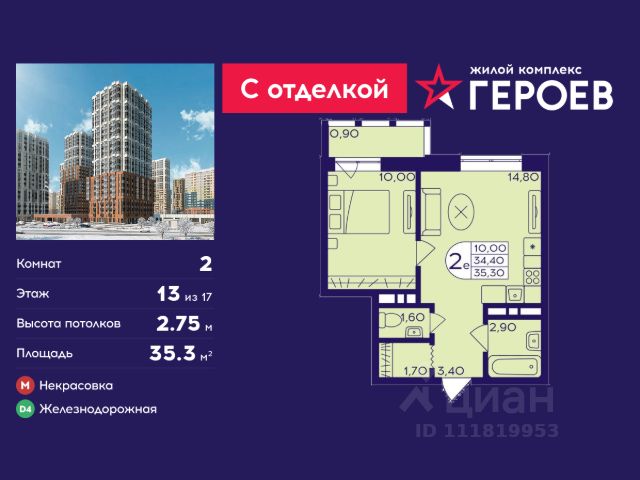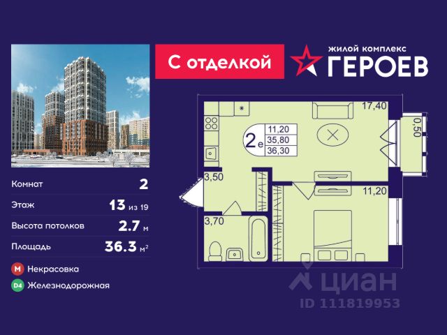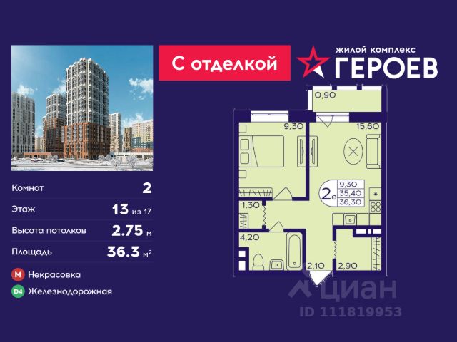 • ✓ В базе Циан 60 2-комнатных квартир на 13 этаже рядом с метро Железнодорожная