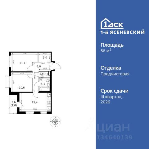 Прямая продажа от застройщика! Жилой Комплекс класса Комфорт Плюс. Продаётся 2-к квартира номер 116 общей площадью 54.8 кв.м. на 13-м этаже 16 этажного здания. Предчистовая отделка. Цена с учётом скидки. Особенности квартиры: - Квартиры рядом с метро - м. Корниловская 9 мин пешком - 63 га лесопарка за окнами - Школа c ИТ-кластером и бассейном. 2 детских сада - Организуем показ в удобное для вас время! - Просторная спальня, в которой можно разместить большую кровать. - Линейная планировка - максимальная функциональность и удобство. - Увеличенная ширина окна/окон - больше света и визуального простора. - Раздельный санузел - больше удобства для всех членов семьи. - Гардеробная - удобство для хранения и организации вещей. - Лоджия - уютное место для отдыха и тишины. Квартира с предчистовой отделкой. Вам не придется заниматься черновыми и трудоёмкими работы, а чистовую отделку и дизайн - сделайте на свой вкус. Информация о комплексе: ЖК "1-й Ясеневский": преимущества городской инфраструктуры и природы. Пешая доступность к метро, школе с бассейном и ИТ-кластеру, а также 63 га Троицкого лесопарка под окнами. Закрытая территория с бульварами, велодорожками, кафе и дворами без машин. Фруктовые деревья и городские сады создают уникальную атмосферу. Всего в 1 км от МКАД - идеальный баланс для современной жизни. Транспортная доступность: До метро "Корниловская" - 12 минут пешком До метро "Тютчевская" - 25 минут пешком До метро "Теплый стан" - 10 минут на транспорте До метро "Ольховая" - 30 минут на общественном транспорте Личный автотранспорт: Выезд на Калужское шоссе - 500 м МКАД - 1 км Внутренняя инфраструктура: ЖК "1-й Ясеневский" - идеальное место для семей с детьми. Рядом Троицкий лесопарк для прогулок, а во дворах - современные детские площадки, разработанные с участием психологов. В шаговой доступности два детских сада и школа на 1100 мест с ИТ-кластером, бассейном и классами робототехники. Всё для счастливого детства и успешного будущего. Квартира с предчистовой отделкой - ваш дизайн без черновых работ