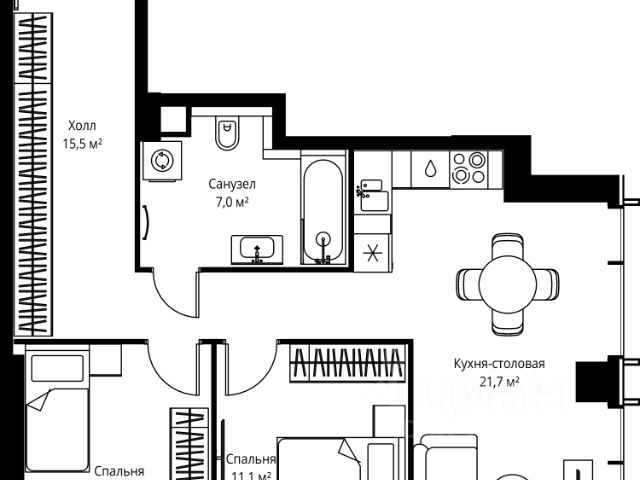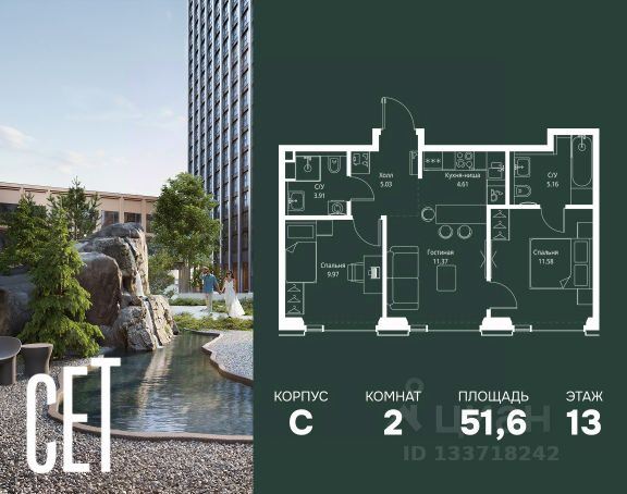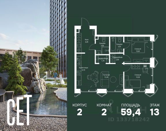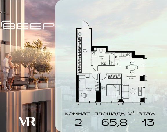 Прямая продажа от застройщика. В ЖК Сет продается 2-комнатная квартира площадью 64.80 м², расположенная в корпусе 2, на 13 этаже 59 этажного дома. Сет имеет стратегически выгодное расположение в ЗАО, в районе с большой историей и блестящим будущим: между природной зоной долины реки Сетунь и Кутузовским проспектом. В рамках возведения первой очереди предусмотрено три корпуса высотой 18, 45 и 59 этажей. На верхних этажах спроектированы общедоступные смотровые площадки с панорамным обзором на центр столицы. Преимущества проекта: • Функциональные планировочные решения • Контроль проникновения через входную дверь • Система управления освещением и температурой в квартире • Система защиты от протечек с функцией перекрытия воды • Вход в подъезд по биометрическим считывателям Face ID • Скоростные лифты • Двухуровневый подземный охраняемый паркинг на 495 машино-мест Застройка Сет включает в себя не только жилые корпуса, но и инфраструктурные объекты. Все необходимое для повседневного комфорта будет расположено в шаговой доступности: • Фитнес-Клуб с бассейном • Ведущая городская школа, детский сад и школа искусств • Центр культуры и досуга • Медицинский центр • Кафе и рестораны Расположение комплекса: Пешком: • Метро "Давыдково" - 17 минут • Парк "Долина реки Сетунь" - 3 минуты • Открытие новых станций метро в шаговой доступности в будущем Инфраструктура: Разнообразить свой день резиденты Веер смогут также проводя больше времени на свежем воздухе. Двор разделен на 4 зоны разных эмоций и действий, которые пересечены и соединены веерными прогулочными маршрутами: • Спортивная площадка устроена в глубине "Кленовой рощи" • В "Чайном домике" будет создан навес с утеплением для отдыха в любую погоду • Площадки для детей воплотятся в "Волшебный лес" с цветами, зеркалами и световым дизайном • "Центральная площадь" устроена у водного оазиса живописного пруда. На машине: • "Москва-Сити" - 15 минут • Садовое кольцо - 20 минут • ТЦ "Океания" - 8 минут • ТЦ "Времена года" - 13 минут • Сколково - 12 минут • Гребной канал - 17 минут Компания MR предлагает своим клиентам специальные условия приобретения квартир в рамках программ ипотечного кредитования от банков-партнеров.