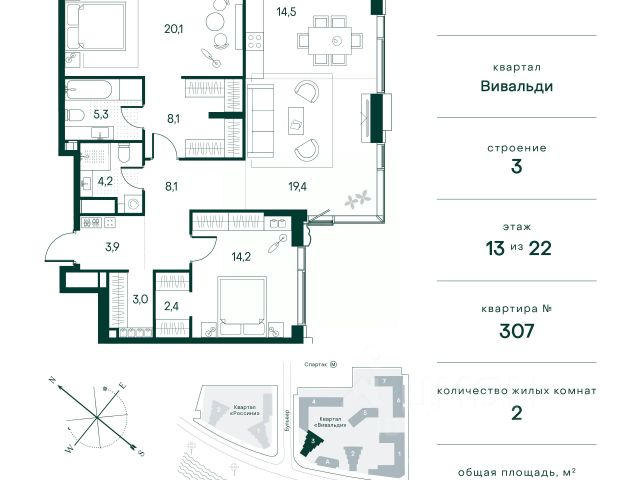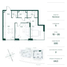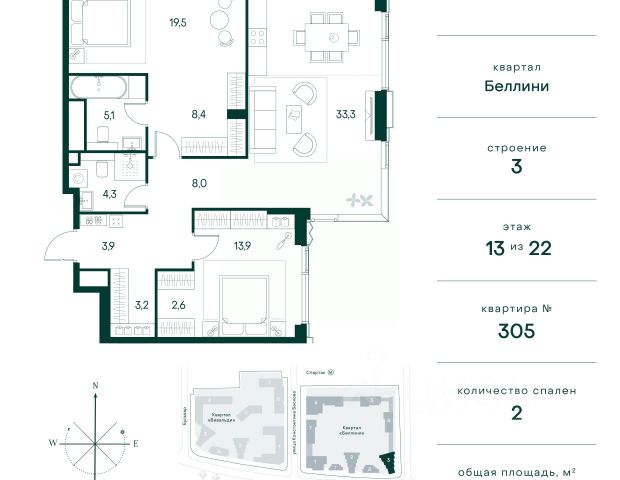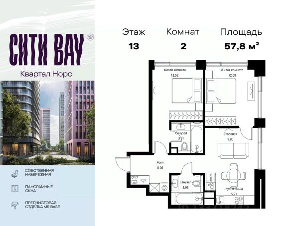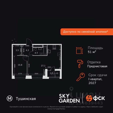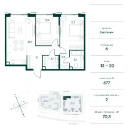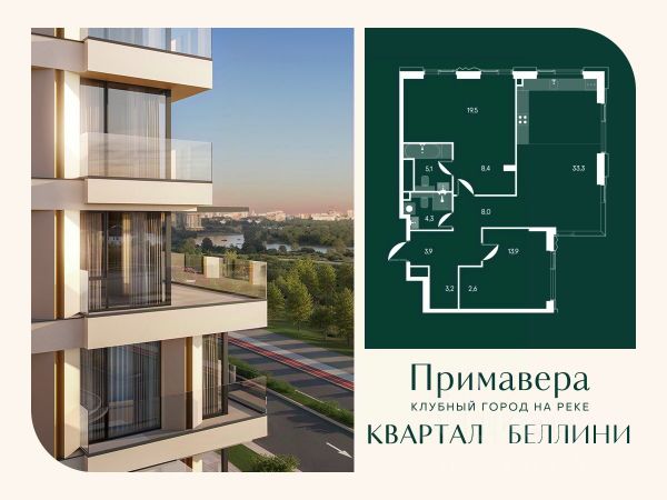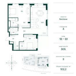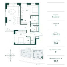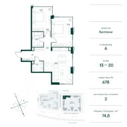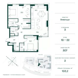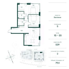 Располагается в 1 корпусе 1 секции на 13 этаже. Сдача 3-й квартал 2025 года .