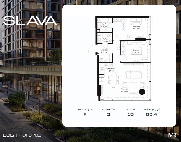 Квартиры премиум-класса в жилом комплексе SLAVA у м. "Белорусская" от застройщика. В продаже 2-комнатная квартира площадью 83.40 м² на 13-м этаже корпуса F. Новый современный жилой комплекс премиум-класса SLAVA расположен в той части центра, где традиция соединяется с прогрессивными городскими тенденциями. Здесь историческая Москва встречается с передовым миром. Популярные театры и старинные церкви соседствуют с современным деловым кварталом и гастрономическим кластером Депо. SLAVA находится всего в 5 мин. пешком от м. "Белорусская", по-новому открывая Ленинградский проспект. Проект был разработан легендарным архитектором Хельмутом Яном, основателем чикагского архитектурного бюро Jahn. Его работы отмечены множеством наград и реализованы в мегаполисах по всему миру. По замыслу архитекторов, жилой комплекс образуют четыре высотные башни, соединенные одноэтажным стилобатом "Хронограф". Здесь, на первом уровне, открытые и закрытые общественные пространства: небольшие сады, места для встреч и отдыха, кафе, рестораны, магазины, спортивный центр и даже выставочное пространство. Важнейшей особенностью пространства является его всесезонность: благодаря правильной организации, ландшафтному дизайну, инженерной инфраструктуре здесь будет уютно и в жару, и в xолод, и в ненастье. На втором уровне стилобата расположится приватный парк для жильцов. Особенности комплекса: - Идеальное расположение в престижной части Москвы (10 мин. от Кремля) - Панорамное остекление - Подземный паркинг с дизайнерской отделкой - Современные инженерные системы - Продуманная внутренняя инфраструктура - Приватный сад 7700 кв.м. Расположение комплекса: - 5 минут до станции метро "Белорусская" - 3 минуты до ТТК - 8 минут до "Садового кольца" Компания MR предлагает своим клиентам специальные условия приобретения квартир в рамках программ ипотечного кредитования от банков-партнеров.