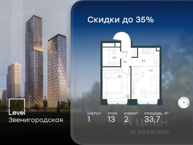10 минут от Москва-Сити В продаже квартира площадью 60.61 м² без отделки на 13 этаже 46 этажного дома. Квартира расположена в корпусе Leo. JOIS это премиальный жилой комплекс от девелопера MR в районе Хорошёво-Мнёвники. Он включает несколько эффектных небоскрёбов высотой 47-56 этажей, эксклюзивные форматы квартир с панорамным остеклением, подземный двухуровневый паркинг на 239 м/м, собственную приватную инфраструктуру, закрытый ландшафтный парк 2,3 Га с функциональным зонированием и охраняемой территорией. Над проектом работали лучшие команды международных агентств с многолетним опытом: Genpro, S&P, iLight International и другие. Расположение Пешком: - 5 мин. ст. МЦК "Хорошёво"; - 15 мин. ст. м. "Народное ополчение"; - 10 мин. ст. метро "Звенигородская" с 2027 года; - 20 мин. причал "Карамышевский". На автомобиле: - 3 мин. до Звенигородского шоссе; - 5 мин. до ТТК: - 8 мин. до Серебряного бора и Строгинского затона - 10 мин. до ММДЦ "Москва-Сити"; - 40 мин. до аэропорта "Шереметьево"; Благоустройство - собственный ландшафтный парк 2,3 Га; - парк скульптур от Cosmoscow; - консьерж-сервис 24/7; - сервисный лифт и вход; - игровые и спортивные площадки; - коворкинг с библиотекой; - лаунж-зона с камином; - игровые комнаты для детей и клуб для подростков с оборудованием для видеоигр; - спортивная студия для индивидуальных тренировок; - гостиная с мини-кухней; - зоны для выгула собак; - подогрев пешеходных дорожек в зимний период; - автополив зелёных насаждений; - премиальные рестораны, кафе, химчистки, аптеки и супермаркеты. Окружение - 4 парка: Покровское-Стрешнево, Филёвский парк, Серебряный бор и Берёзовая роща; - 15 общеобразовательных заведений, в том числе две школы из самых лучших в Москве: государственная школа "Интеграл" и частная "Хорошкола"; - спортивное сооружение "ВЭБ Арена", домашний стадион ФК ЦСКА; - крупнейший в Европе торгово-развлекательный центр "Авиапарк".
