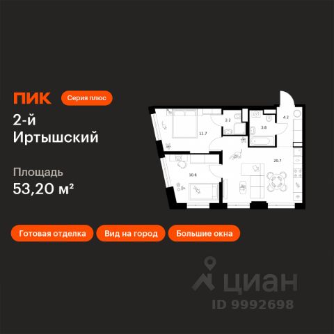 Продаётся 2-комн. квартира площадью 53,2 кв.м на 13 этаже 43 этажного дома (Корпус 1.1, Секция 1) проекта ПИК 2-й Иртышский. Светлый просторный подъезд на уровне земли, функциональная планировка, большие окна, c отделкой. "2-й Иртышский" возводится на востоке Москвы, между тремя станциями метро "Щелковская", "Черкизовская" и "Бульвар Рокоссовского". Проект включает жилые корпуса с индивидуальной архитектурой, школу и детский сад. Проект состоит из зданий разной высоты и разной по характеру архитектуры. Узнаваемой доминантой квартала станет башня из стекла и металла, напоминающая водопад. Квартал расположен в окружении нескольких знаковых рекреационных зон столицы. Вам понадобится всего несколько минут, чтобы оказаться в атмосфере спокойствия и слияния с природой. Всего 15 минут пешком, и вы в "Сиреневом саду", а дорога до национального парка "Лосиный остров" или Гольяновского пруда займёт 6 минут на авто. До Черкизовского детского парка и "Усадьбы Измайлово" можно доехать за 15 минут. До станции "Черкизовская" можно дойти пешком за 25 минут или доехать на общественном транспорте за 20. Дорога до станций "Бульвар Рокоссовского" и "Щёлковской" займёт 25 минут на общественном транспорте. Автомобилисты оценят удобные выезды на Щёлковское шоссе и СВХ. Путь до МКАД займет около 14 минут, до ТТК - 20. Артикул 980718 (Застройщик ООО "СЗ "Л-Девелопмент")