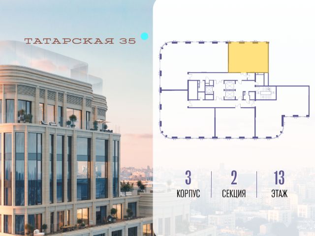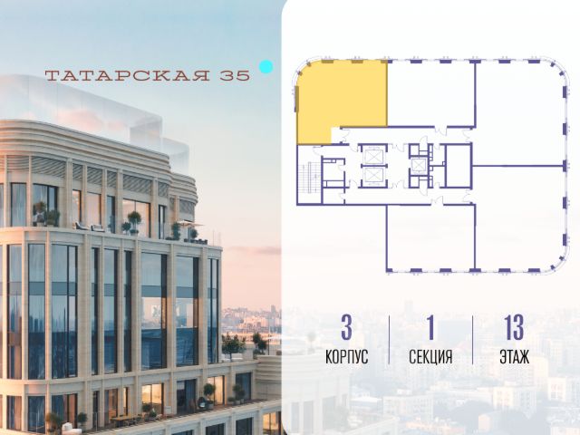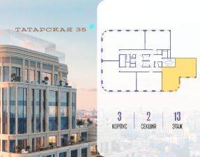 Продается просторная квартира площадью 76.30 м2 в жилом комплексе ТАТАРСКАЯ, 35. Квартира находится в 1 секции корпуса 3. Этаж 13-й из 24. Квартира без чистовой отделки, с просторной кухней 23.50 м2. Жилая площадь 30.70 м2. Высота потолка от 3.50. ТАТАРСКАЯ, 35 - новая архитектурная доминанта Замоскворечья, достопримечательность на фотопанорамах исторического центра Москвы. Элитный дом, созданный для тех, кто умеет смотреть далеко вперед, мыслить масштабно и воплощать собственный сценарий жизни. Вдохновляющие прогулки по променаду набережной, в уютных переулках, в парке "Зарядье", в Михайловском саду и Репинском сквере. Наслаждение высоким искусством в Третьяковской галерее, Доме Музыки, театральном музее им. А.А. Бахрушина, театре на Малой Ордынке. За окнами - Кремль, высотка на Котельнической, панорамы Замоскворечья и острова Балчуг, огни Садового кольца. Собственные спорт-румы, детская, репетиторская, бьюти-пространства, деловое пространство с коворкингом, переговорной и сигарной. Собственный трехуровневый фитнесс-центр с бассейном, тренажерным залом, сауной, хаммамом, массажным кабинетом. Площадь двора - 1,8 га, половина территории покрыта деревьями, кустарниками и лужайками. Дом расположен внутри Садового кольца - отсюда в считанные минуты можно добраться до важнейших мест столицы: достопримечательностей и парков, театров и ресторанов, деловых и административных центров. 7 минут до Кремля на автомобиле, 15 минут до Третьяковской галереи и 8 минут до Садового кольца пешком. Планировочные решения и визуализации предварительны, возможны изменения.