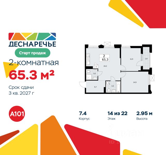 • ✓ В базе Циан 45 2-комнатных квартир на 14 этаже в поселении Десёновское в Москве