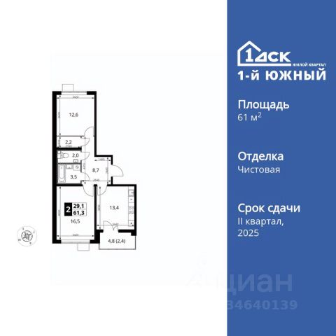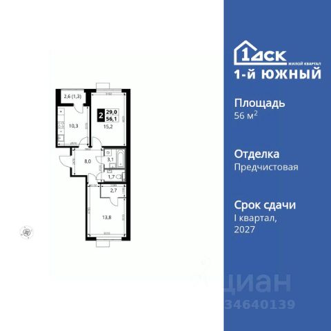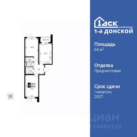 УСПЕЙ ПО СЕМЕЙНОЙ ИПОТЕКЕ БЕЗ НАЦЕНКИ! Квартиры с отделкой от 30 000 рублей в месяц! Прямая продажа от застройщика! Жилой Комплекс класса Комфорт Плюс. Продаётся 2-к квартира номер 600 общей площадью 64.4 кв.м. на 14-м этаже 24 этажного здания. Отделка Whitebox. Особенности квартиры: - МЦД-5 в пешей доступности - Квартал с собственной набережной - Свои 2 детских сада и школа - Просторная спальня, в которой можно разместить большую кровать. - Распашная планировка - отличное сочетание удобства и свободы. - Раздельный санузел - больше удобства для всех членов семьи. - Просторная кухня - место для семейных ужинов и кулинарных экспериментов. - Гардеробная - удобство для хранения и организации вещей. - Лоджия - уютное место для отдыха и тишины. Квартира с предчистовой отделкой (White box). Вам не придется заниматься черновыми и трудоёмкими работы, а чистовую отделку и дизайн - сделайте на свой вкус. Информация о комплексе: Комплекс 1-й Донской расположен в 7 км от МКАД по трассе М-4 Дон. В нем сочетаются все плюсы комфортной городской среды и природного окружения. В проекте достаточно большой процент квартир, выходящих на 2-3 стороны света. Секции-маяки формируют у зданий визуальную L-форму, что придает застройке структуру и ритмику объемов. На ощущение динамики работает и разная этажность зданий. Теплая цветовая палитра фасадов отражает природу Дона. Вечерами дома преображаются благодаря архитектурной подсветке, выгодно выделяясь на городском фоне. Природа оказывает положительное влияние на человека на всех уровнях восприятия: через зрение, запахи, звуки, тактильные ощущения. Неподалеку от ЖК Первый Донской: Ермолинский парк, Видновский лесопарк, Жуковский парк Транспортная доступность: Комплекс удобно расположен в 7 км от МКАД по трассе М-4 Дон (через Видное). Расстояние до Каширского шоссе составляет 12 км. Добраться до метро и центра Москвы позволяет развитая сеть маршрутов общественного наземного транспорта. Действующая ж/д станция Калинина Павелецкого направления в 15-17 минутах ходьбы (МЦД-5 в 2025-2026 гг). Внутренняя инфраструктура: Проект 1-й Донской соседствует с бурно развивающимся районом, основная инфраструктура которого уже сложилась. В строительстве современных жилых комплексов в округе есть свои плюсы: здесь формируется продуманная и комфортная городская среда. Что касается внутренней инфраструктуры, на территории квартала будут расположены собственные муниципальные 2 детских садика и школа, которые помогут совместить приятное с полезным. Территория комплекса пронизана целой сетью живописных пешеходных маршрутов, позволяющих попасть в любой уголок района. Основные пути, как водится, "торговые". Они проходят вдоль магазинов, кафе и других представителей коммерции и отделяются от проезжей части зеленой "фито" - стеной. Среди крупных социальных объектов предусмотрены своя поликлиника и торговый центр с примыкающей площадью для общественных мероприятий. Уют начинается с продуманного подъезда. Ск
