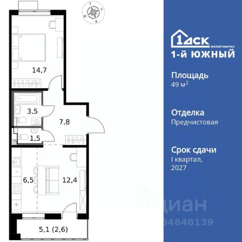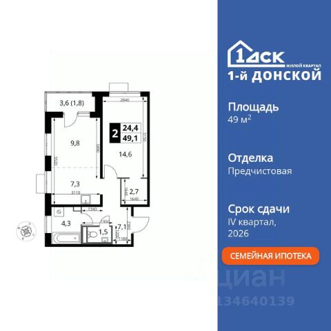 Прямая продажа от застройщика! Жилой Комплекс класса Комфорт Плюс. Продаётся 2-к квартира номер 407 общей площадью 49.5 кв.м. на 14-м этаже 24 этажного здания. Отделка Whitebox. Особенности квартиры: - МЦД-5 в пешей доступности - Квартал с собственной набережной - Свои 2 детских сада и школа - Просторная спальня, в которой можно разместить большую кровать. - Линейная планировка - максимальная функциональность и удобство. - Раздельный санузел - больше удобства для всех членов семьи. - Евроформат - просторное и удобное жилье с отличной планировкой. - Кухня-гостиная - идеальное пространство для встреч с близкими. - Линейная кухня - функциональность и практичность в одном решении. - Лоджия - уютное место для отдыха и тишины. Квартира с предчистовой отделкой (White box). Вам не придется заниматься черновыми и трудоёмкими работы, а чистовую отделку и дизайн - сделайте на свой вкус. Информация о комплексе: Комплекс 1-й Донской расположен в 7 км от МКАД по трассе М-4 Дон. В нем сочетаются все плюсы комфортной городской среды и природного окружения. В проекте достаточно большой процент квартир, выходящих на 2-3 стороны света. Секции-маяки формируют у зданий визуальную L-форму, что придает застройке структуру и ритмику объемов. На ощущение динамики работает и разная этажность зданий. Теплая цветовая палитра фасадов отражает природу Дона. Вечерами дома преображаются благодаря архитектурной подсветке, выгодно выделяясь на городском фоне. Природа оказывает положительное влияние на человека на всех уровнях восприятия: через зрение, запахи, звуки, тактильные ощущения. Неподалеку от ЖК Первый Донской: Ермолинский парк, Видновский лесопарк, Жуковский парк Транспортная доступность: Комплекс удобно расположен в 7 км от МКАД по трассе М-4 Дон (через Видное). Расстояние до Каширского шоссе составляет 12 км. Добраться до метро и центра Москвы позволяет развитая сеть маршрутов общественного наземного транспорта. Действующая ж/д станция Калинина Павелецкого направления в 15-17 минутах ходьбы (МЦД-5 в 2025-2026 гг). Внутренняя инфраструктура: Проект 1-й Донской соседствует с бурно развивающимся районом, основная инфраструктура которого уже сложилась. В строительстве современных жилых комплексов в округе есть свои плюсы: здесь формируется продуманная и комфортная городская среда. Что касается внутренней инфраструктуры, на территории квартала будут расположены собственные муниципальные 2 детских садика и школа, которые помогут совместить приятное с полезным. Территория комплекса пронизана целой сетью живописных пешеходных маршрутов, позволяющих попасть в любой уголок района. Основные пути, как водится, "торговые". Они проходят вдоль магазинов, кафе и других представителей коммерции и отделяются от проезжей части зеленой "фито" - стеной. Среди крупных социальных объектов предусмотрены своя поликлиника и торговый центр с примыкающей площадью для общественных мероприятий. Уют начинается с продуманного подъезда. Сквозные подъезды на