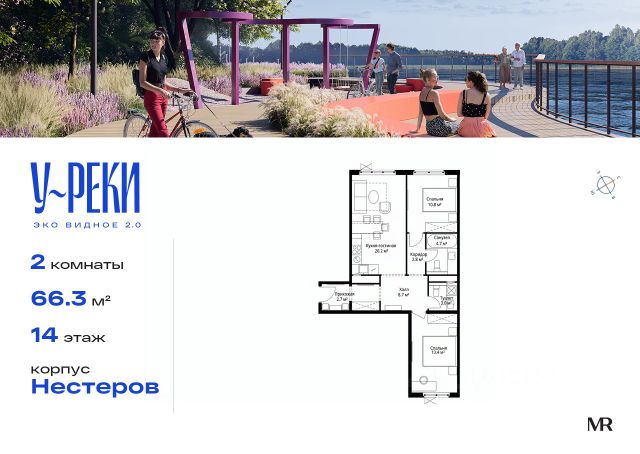 Продается 2-комнатная квартира общей площадью 57.6 кв. метров на 14 этаже жилого комплекса ВЕЙВ. Комплекс располагается на юге Москвы в районе Москворечье-Сабурово. В пешей доступности расположены станция МЦД "Москворечье" и станция метро "Борисово". Для автомобилистов есть удобное сообщение с Каширским шоссе. Вторая очередь ВЕЙВ представляет собой архитектурный ансамбль из семи корпусов переменной этажности, объединенных общим стилобатом, в котором расположатся различные объекты инфраструктуры. Со стороны улицы Борисовские Пруды ВЕЙВ предстает тремя стометровыми башнями, выполненными футуристичными каскадами из стекла и металла. С противоположной стороны — три невысоких здания с непохожими друг на друга фасадами, придающими комплексу свой характер и уникальность. Ключевым преимуществом ВЕЙВ является благоустроенная набережная со смотровой площадкой, беговыми и велодорожками, детскими и спортивными. В центре квартала появится зеленый пешеходный бульвар с детскими и спортивными площадками, а также зоной тихого отдыха. Вокруг жилого квартала сосредоточены более 2000 га зеленых пространств: парк "Борисовские пруды", Братеевский каскадный парк, парк 850-летия г. Москвы, музеи-заповедники "Царицыно" и "Коломенское". Особое внимание в ВЕЙВ уделено интерьерам лобби, выполненным в современном стиле с контрастными акцентами. Стильное пространство разделено на несколько зон: ресепшен, зона ожидания с Wi-Fi и мягкими креслами, колясочная и лаконичный лифтовый холл. Для автомобилистов предусмотрен подземный паркинг с видеонаблюдением, зоной с оборудованием для подкачки колес, усилителем сотовой связи и системой распознавания номеров.
