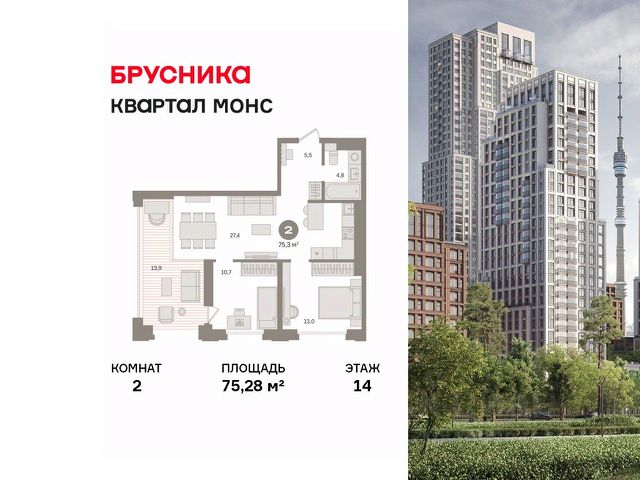 Продаётся 2-комнатная квартира площадью 68 кв.м на 14 этаже 55 этажного корпуса Эльбрус в квартале небоскребов "Upside Towers". В квартире отделка White-box, c видом на детский сад, БЦ Останкино. Номер квартиры А1404. Upside Towers - технологичный квартал строится в динамично развивающемся Бутырском районе, в 3 мин. от метро, в 5 мин. от ТТК. На территории 7 га возводится 5 высотных башен от 19 до 58 этажей, названных в честь главных вершин земли. Квартиры с панорамными окнами в пол, высокими потолками и современными инженерными решениями. Благоустроенная зеленая территория включает: приватные дворы, природный комплекс, прогулочный бульвар, ландшафтный парк 2,5 га с сенсорным садом и многофункциональными игровыми и спортивными площадками. Большое внимание в проекте уделяется созданию социальной инфраструктуры. Более 2000 кв.м. отдано под Upside club закрытый клуб, уникальное пространство для общения и развития жителей квартала, включая SKY SPA Relax на 47 этаже башни "Атлас" расслабляющей атмосферой, джакузи, сауной, залами для релаксации и йоги доступное жителям Upside Towers, всесезонное барбекю-патио, лаундж зону с камином и роялем, многофункциональные игровые пространства, домашний кинотеатр, коворкинг и переговорные. В башнях откроются смотровые террасы для резидентов с панорамными видами на город, парки, Останкинскую башню, ВДНХ, Ботанический сад и Москву-Сити. В рамках проекта строится государственная школа и детский сад, разместится более 15 000 кв.м. коммерческой инфраструктуры. Насыщенная социальная инфраструктура формирует множество сценариев для жизни на территории квартала. В Upside Towers применяются лучшие технологии и практики, чтобы обеспечить высшее качество жизни: Воздух, не уступающий по качеству горному, обеспечит приточно-вытяжная вентиляция. Пятиступенчатая очистка воды с сохранением полезных минералов. Центральное кондиционирование. Внутрипольные конвекторы с естественной конвекцией. Современные системы безопасности и мониторинга микроклимата. Высокоскоростной интернет на всей территории, в квартирах и паркинге за счет усиления GSM-связи всех ведущих операторов. Все места в подземном паркинге оборудованы зарядками для электрокаров. Бутырский район непрерывно развивается и готовится стать новым современным деловым районом Москвы. В рамках программы "Индустриальные кварталы" комплексного развития территории Огородного проезда будут построены современные образовательные и спортивные учреждения, торговые центры, кафе, банки, общественно-деловые здания и другие объекты. В пешей доступности работают школы, детские сады, поликлиники, аптеки, супермаркеты и многое другое. Рядом находится несколько крупных зелёных зон для спокойного отдыха: Парк Останкино, ВДНХ, Парк Сокольники, Гончаровский парк, в 15 минутах пешком располагаются знаменитые арт-пространства - дизайн-завод Flacon и "Хлебозавод". Время в пути на автомобиле до центра Москвы 15 минут. (Застройщик ООО "СЗ "К-Девелопмент")