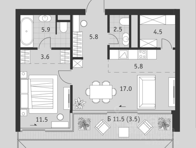 • 3 Спальни, кабинет, просторная гостиная, гардеробные при каждой