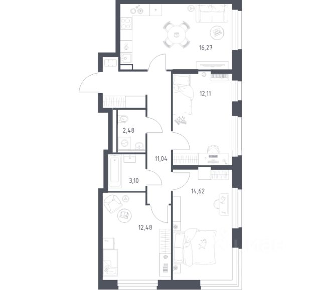 Строим кварталы для жизни с заботой о будущем. Предлагается 2-комнатная квартира комфорт-класса площадью 58,87 кв.м в корпусе 2 на 14-м этаже, в жилом комплексе "Квартал Строгино". В варианте без отделки мы установили окна и входную дверь, завели в квартиру коммуникации. Получайте ключи и начните создавать интерьер мечты в новой квартире. В варианте с предчистовой отделкой мы развели коммуникации по помещениям, выровняли и зашпаклевали стены, подготовили пол к чистовому покрытию. Ваша будущая квартира готова к финишному ремонту. Осталось выбрать, какие оттенки будут в вашем интерьере и воплотить дизайнерские идеи. В варианте с готовой отделкой мы поклеили обои под покраску, постелили полы в комнатах и санузлах, выполнили отделку стен. Установили сантехнику и межкомнатные двери, провели электрику. Это лучшее соотношение цены, качества и затраченного времени. Осталось только выбрать место для обеденного стола и удобного дивана. Приобрести квартиру возможно по специальным акциям от застройщика, с текущими условиями акций можно ознакомиться в блоке "Акций". Цена динамическая и может отличаться, уточняйте актуальность у застройщика. В жилом комплексе "Квартал Строгино" вас ждет широкий выбор досуга. Рядом МКАД и выезд на Новорижское шоссе и станции метро "Строгино" и "Мякинино". В пешей доступности — Живописная бухта, можно доехать до "Липовой Рощи" и "Серебряного бора". На территории комплекса будут 2 детских сада, школа и поликлиника. Двор-парк с площадками, велодорожками и паркингами. В лобби есть помещения для колясок. Квартиры с готовой отделкой и видом на бухту.