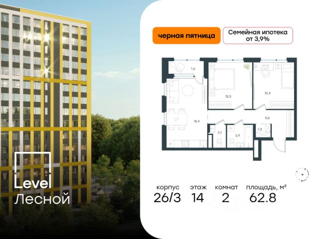 • ✓ В базе Циан 35 2-комнатных квартир на 14 этаже рядом с метро Митино