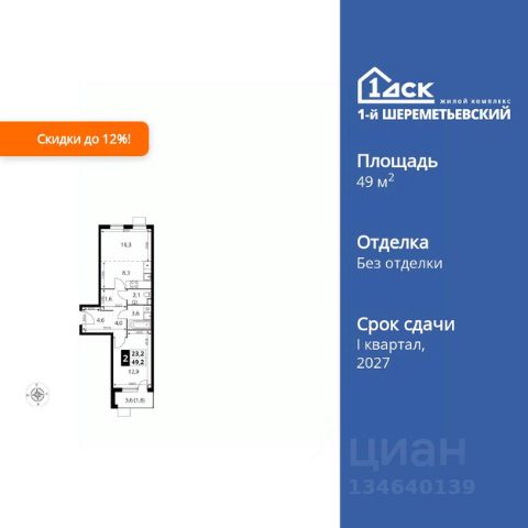 Продается двухкомнатная квартирав жилом комплексе комфорт класса "Химки Тайм" площадью 48.56 кв.м на 14 этаже 20 этажного дома. Квартира с полной отделкой, окна выходят во двор и на улицу. Прекрасный выбор для первой квартиры или инвестиций. Комфортные квартиры по комфортной цене! • Скидки на квартиры до 17% (стоимость квартиры в карточке указана с учетом скидки). • Семейная ипотека без дополнительных комиссий • IT ипотека без дополнительных комиссий • Квартиры "под ключ", сдаются с чистовой отделкой, в светлых и темных тонах на ваш выбор. • Точечная застройка с готовым ремонтом: выбирайте дом, где слышно птиц, а не стройку. Живите ДОМА, а не на стройплощадке. • Бесплатный наземный паркинг грамотное планирование потоков машин и пешеходов позволяют сделать дом удобным для всех. Не нужно переплачивать за подземный гараж. • Прекрасный выбор для первой квартиры или инвестиций. В 20252027 недалеко будет запущен Индустриальный парк "Молжаниново" технологичный объект, который станет еще одним катализатором развития района, предоставит рабочие места высококвалифицированным специалистам и подстегнёт спрос на покупку и аренду квартир. Успейте вложиться по выгодной цене. До центра Москвы на учебу, работу и по любому поводу — это быстро! • 5 мин пешком до скоростной линии МЦД-3 "Молжаниново". • От 30 мин на автобусе или маршрутке до ст.м. "Сходненская", "Речной вокзал". Остановка общественного транспорта "Филино" около ЖК. • На автомобиле удобный выезд на Ленинградское шоссе: до центра Москвы — 40 минут, до международного аэропорта Шереметьево — 20 минут. В состав чистовой отделки входит всё, что нужно для комфорта. Вкладывайте в себя и в детей, а не в ремонт! • Выравнивание полов, стен и потолков • Покрытие полов ламинатом • Поклейка обоев • Монтаж натяжных потолков с установкой светильников • Установка межкомнатных дверей • Установка радиаторов отопления • Выкладывание плиточного "фартука" на кухне • Установка водопроводных и канализационных труб в "мокрой зоне" на кухне • Укладывание плитки в ванной комнате • Установка сантехники • Установка счетчиков • Разводка электросети • Монтаж розеток, выключателей Архитектура на многие десятилетия! • Дома строятся по монолитной технологии с вентилируемыми фасадами. В квартирах будет комфортный микроклимат в любой сезон, а корпуса сохранят достойный внешний вид в течение долгого времени. • В каждом корпусе один подъезд и 3 лифта это не человейник. • В каждом подъезде есть отдельная комната для хранения спортивного оборудования. Инфраструктура на территории качественный дом с понятной "начинкой". • На первых этажах расположатся магазины, салоны красоты и кафе • Внутри ЖК будет муниципальный детский сад • 2 спортивные площадки • 2 площадки для отдыха взрослого населения • 4 детские игровые площадки Собственный паркинг ваша машина около вашего дома. • В ЖК своя бесплатная наземная автостоянка на 210 машиномест Окружение выбирайте ЖК