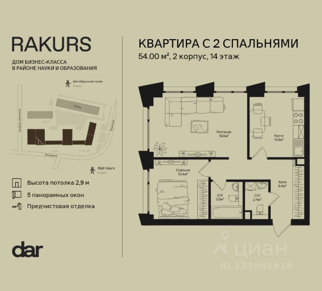 • ✓ В базе Циан 13 2-комнатных квартир на 14 этаже рядом с метро Октябрьское поле