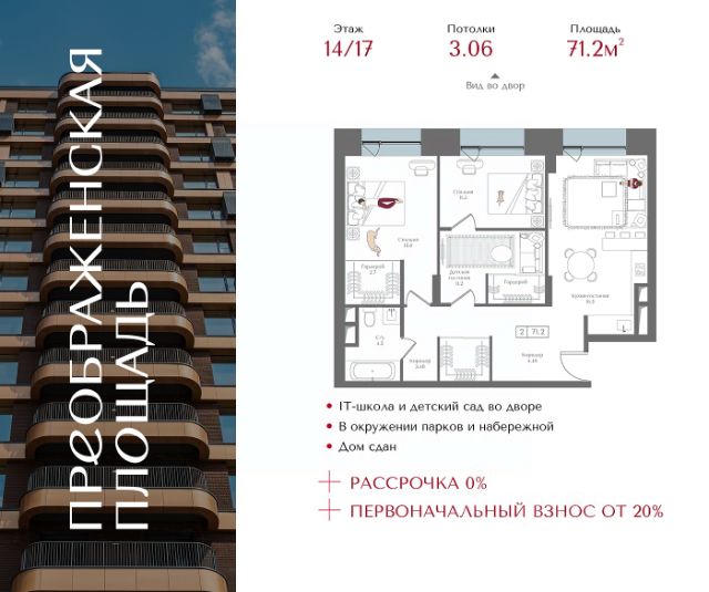 Предложения месяца от девелопера: - Ипотека от 3,5% на весь срок или 0,11% на первый год - Рассрочка без процентов - Trade-in с проживанием на время строительства дома Просторная 2-комнатная квартира для молодой семьи. Общая площадь - 70.7 м2. на 14 этаже, с предчистовой отделкой. Эргономичные планировки, мастер-спальни с гардеробной и санузлом, угловые комнаты и террасы с видами на город и национальный парк "Лосиный остров". НАЗАРЕ' - шесть домов бизнес-класса высотой 24-43 этажа. Проект расположен в окружении трёх парков: "Лосиный остров", "Сокольники" и "Измайловский". Территория НАЗАРЕ' приватный двор-сад с авторским благоустройством. Здесь появится сеть прогулочных дорожек, зоны тихого отдыха и медитации, игровые и спортивные площадки и коворкинг на свежем воздухе. В продаже квартиры с мастер-спальнями, кухнями-гостиными, открытыми террасами и просторными кладовыми. Форматы - от светлых студий 21,5 м2 до семейных 4-комнатных 125, 5 м2. Часть лотов - с предчистовой отделкой. Транспортная доступность: - Метро "Бульвар Рокоссовского" и МЦК - 2 мин. пешком - Северо-Восточная хорда - 3 мин. на автомобиле - Третье транспортное кольцо - 15 мин. на автомобиле - Садовое кольцо - 18 мин. на автомобиле Инфраструктура: - Собственный детский сад. - Собственный торгово-развлекательный центр с акцентом на шопинг и досуг в шаговой доступности. Здесь появятся различные ресторанные концепции, фитнес-клуб и детская игровая зона. - На первых этажах домов откроются кафе, пекарни, магазины и службы сервиса. - Общественная гостиная с мягкой мебелью и детской игровой. - Фитнес-зона для индивидуальных и групповых занятий. - Двухуровневый подземный паркинг с келлерами для хранения сезонных вещей. - В районе Богородское находятся престижные школы, медцентры, магазины и спортивные клубы.