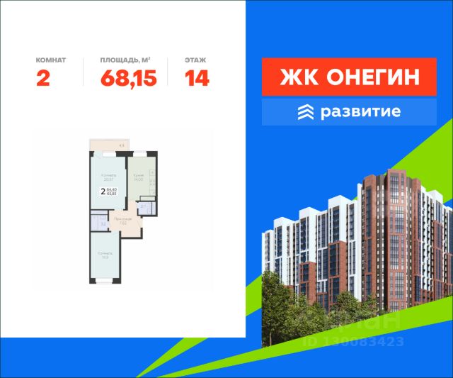 Продается двухкомнатная квартира в жилом комплексе комфорт класса "Домодедово парк" площадью 66.87 кв.м. на 14 этаже 17 этажного дома. Окна выходят во двор и на улицу.