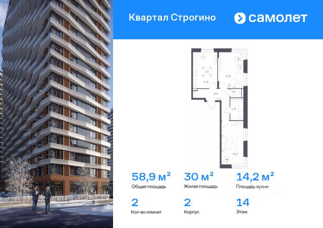 • ✓ В базе Циан 8 2-комнатных квартир на 14 этаже рядом с метро Строгино
