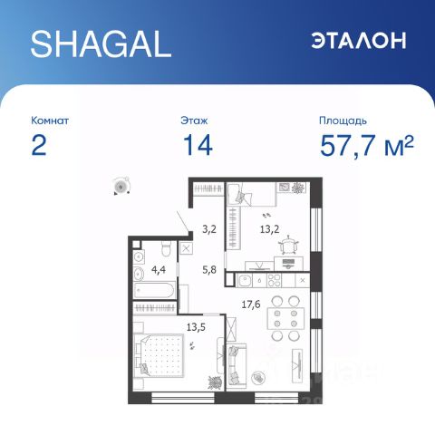 Продается 2-к квартира без отделки в ЖК "Shagal". Общая площадь квартиры — 57.3 кв. м, этаж 14 из 18. Тип дома — монолитный. Цена указана при 100% оплате. Квартал Shagal — крупнейший проект комплексного освоения в Москве. В проекте реализуется продуманная система маршрутов. Еда, покупки, услуги, прогулки, спорт, образование, работа и развлечения — все будет находиться рядом с домом: принцип 15-минутной доступности инфраструктуры и сервисов. Разнообразие и продуманность пешеходных маршрутов, а также короткие расстояния между основными точками притяжения мотивируют резидентов Shagal с удовольствием передвигаться по району пешком, не выпадая из ритма большого города. Продуманная транспортная сеть района и безопасный скоростной режим создают комфортные условия для перемещений любым способом: на автобусе, машине, самокате или велосипеде. Не нужно выезжать из района, чтобы получить комфорт и сервис самого высокого современного стандарта: все необходимые услуги, инфраструктура, парки и вторая по протяженности набережная в городе — на расстоянии 15-минутной прогулки от вашего дома. Квартал Shagal станет первым в Москве жилым районом, где будут комплексно реализованы инновационные подходы в проектировании и строительстве зданий. Архитектурная композиция состоит из домов отличающегося типа. Высотные башни-доминанты с видовыми квартирами, дома пониже, растворяющиеся в спокойствии внутренних двориков, малоэтажные камерные таунхаусы и разноэтажные дома с лоджиями на первой береговой линии соединяются в одно эстетичное современное произведение. В результате создаётся насыщенное идентичное пространство, подчёркнутое плавностью природных форм, наполненное светом, воздухом и свободой.