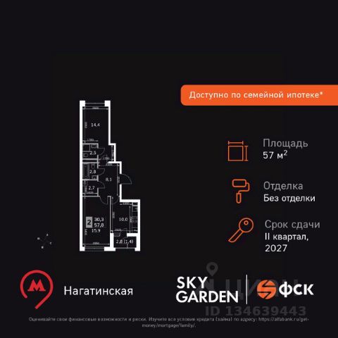 Прямая продажа от застройщика. Продаётся 2-комнатная квартира общей площадью 57.12 м² с предчистовой отделкой в ЖК Сити Бэй, квартале North, на 14-м этаже 27 этажного дома. Концепция жилого комплекса Сити Бэй - настоящий город в городе с отлично развитой инфраструктурой и собственной благоустроенной набережной. На территории жилого комплекса расположено пять кварталов - Atlantic, Pacific, Indian, North, Cliff. Жилой квартал Сити Бэй отличается оригинальной концепцией и выделяется среди других проектов такими характеристиками как: - Архитектура, - Виды из окон, - Природное окружение, вызывая гордость у жителей и восхищение у прохожих. Вся жизнь района Покровское-Стрешнево строится вокруг водных объектов: - Пойма реки Сходни с уникальной экосистемой, - Речка Химка и Химкинское водохранилище, - Москва-река, - Канал имени Москвы. Кругом вода, и местные с удовольствием этим пользуются. А сразу за рекой - центр водного спорта в Строгино с вейк-парком и яхт-клубами. Помимо воды, здесь очень много зелени: - Рядом Сходненский ковш памятник природы, естественный амфитеатр глубиной 40 метров; - Парк при усадьбе Братцево с фруктовым садом; - Дубовая роща "Маяк", - Алешкинский лес; - Лесопарк Покровское-Стрешнево с пляжами и бобрами. Главные транспортные артерии района: - Волоколамское шоссе, - Таганско-Краснопресненская линия метро и МЦД-2. Всего за 20 минут можно добраться до центра на машине или метро, а МЦД связывает ЖК Сити Бэй с северными, восточными и юго-восточными районами. Компания MR предлагает своим клиентам специальные условия приобретения квартир в рамках программ ипотечного кредитования от банков-партнеров.