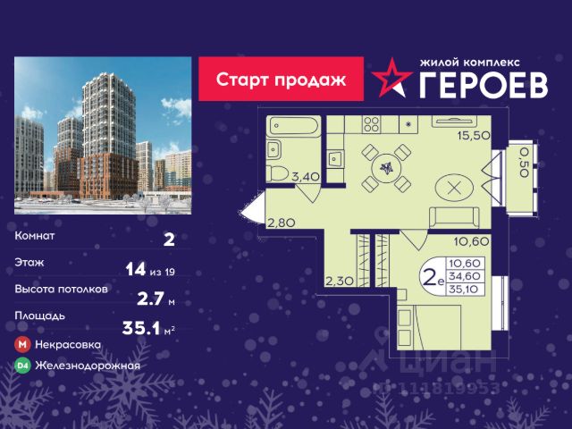 Продаётся 2-комнатная квартира в формате евро 36.50 кв. м. в жилом комплексе "Героев" в Балашихе, Железнодорожный. Квартира расположена на 14 этаже 410 корпуса. В наличии квартиры с отделкой. Всего 40 минут до центра Москвы. При покупке квартиры в сданном доме ключи выдаются сразу! Жилой квартал "Героев" - это уютный проект для семей с детьми. В квартале созданы все условия для досуга всех возрастов: игровые и спортивные площадки, места для отдыха и прогулочные зоны. За 15 минут можно дойти от дома до Ольгинского лесопарка, популярного места для отдыха на свежем воздухе. На территории жилого комплекса уже открыт детский сад на 250 мест и началось строительство еще одного - для 220 малышей, а также школы для 1320 учеников. Рядом работают магазины, кафе, супермаркеты, пункты выдачи. Преимущества: • В уютных светлых квартирах с просторными кухнями-гостиными удобно встречать гостей и проводить время наедине друг с другом. • Благодаря увеличенному остеклению в комнатах много света. • Квартиры продаются с отделкой, можно заселяться сразу после получения ключей.