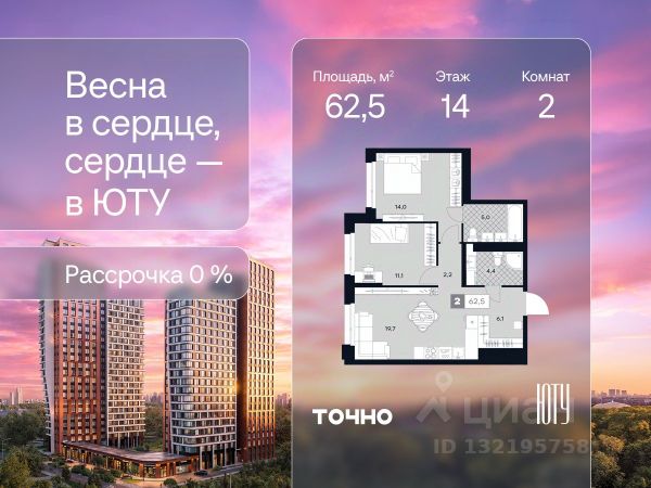 Скидка до 18% в апреле на выделенный пул лотов! ЮТУ — камерный проект бизнес-класса с исключительной архитектурой, видовыми квартирами и подходом к большой благоустроенной набережной канала имени Москвы. Проект создает идеальный баланс жизни в городе. Это приватный оазис, где в любой момент можно сменить обстановку и выбрать любой из тысячи маршрутов к активному отдыху и ярким впечатлениям. Удачное месторасположение: • Первая линия в прибрежной части Химкинского водохранилища • Исключительно тихий и зелёный район Южное Тушино • За 2 минуты можно спуститься к воде, за 10 минут найти зеленые парки и готовую инфраструктуру, за 30 минут доехать до Кремля Концепция проекта: • Две футуристичные башни, соединенные торговой галереей от бюро ATRIUM • 60 неповторяющихся планировок: квартиры с угловым панорамным остеклением, мастер-спальнями и гостиными до 39м², а также просторные квартиры площадью до 128,6 м² Чувство эксклюзивности: • Своя приватная жилая экосистема только для резидентов домов • Лаунж-терраса на крыше • В проекте предусмотрен закрытый двор-парк. Прогрессивные технологии: • 3-х уровневая система безопасности (Face ID, BLE-метки, видеонаблюдение) • Умный паркинг с распознаванием номеров Проект федерального девелопера ТОЧНО, который входит в ТОП-5 девелоперов России по объемам строительства.