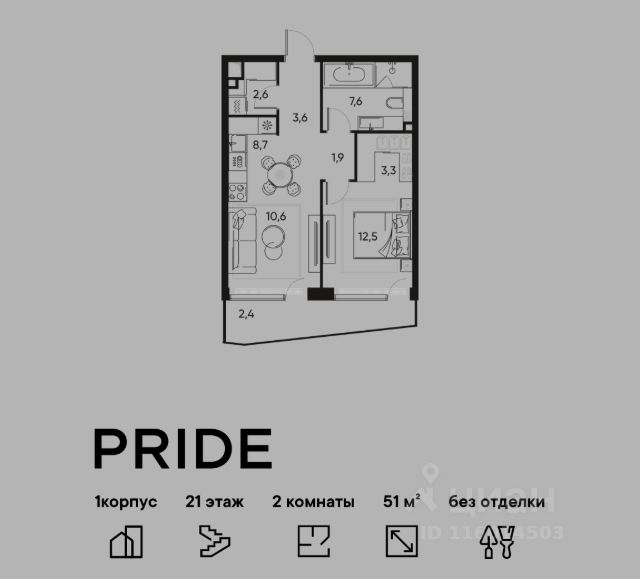 В премиальном жилом квартале Прайд продается 2-комнатная квартира в 1 корпусе, на 15 этаже, в секции 6. Её общая площадь составляет 47.3 м². Пространство включает 1 уютную спальню 14,4 м², просторную кухню-гостиную 21,4 м² и ванную комнату 5,7 м². Ключи в 2026 году. Удобная локация: Жилой квартал расположен в 15 минутах от Цветного бульвара в историческом районе Марьина Роща. До любой точки города быстро и удобно добраться, как на общественном транспорте, так и на авто — комплекс находится всего в 3 минутах от ТТК и в пешей доступности от метро. Яркая архитектура с переменной высотностью от 7 до 22 этажей от именитого бюро APEX формирует запоминающийся облик проекта. Развитая инфраструктура: Территория квартала делится на несколько отдельных частей: открытый просторный бульвар 3500 м² для прогулок и два внутренних камерных двора. Внутри предусмотрены площадки для спорта, места для игр и тихие пространства для отдыха и неторопливого общения. Коммерческие и торговые помещения спроектированы на уровне первых этажей: супермаркеты, магазины, рестораны и кофейни, барбершоп, спа-салон и другие сервисные точки. Образовательный центр со школой на 257 учеников и детским садом на 112 мест на собственной территории квартал - идеальное решение для семей с детьми. Таким образом, внутренняя инфраструктура Прайд обеспечит все базовые потребности будущих жителей. Благоустроенная территория: Ландшафтный дизайн с многоуровневым и замысловатым озеленением будет радовать жителей на протяжении всех сезонов — богатая флора дворов включает в себя несколько десятков видов растений. Лобби как в лучших отелях мира: На первых этажах резидентов и гостей встретят лобби с авторским дизайном от Sundukovy Sisters, бюро знаменито своими работами для отелей и ресторанов премиум-класса во всем мире. Надежный застройщик: Девелопер PIONEER — компания с 24-летней историей. В портфеле — 40 проектов жилой, коммерческой, социальной и многофункциональной недвижимости в Москве и Санкт-Петербурге. С 2001 года было реализовано 2,9 млн м². В настоящее время 1,6 млн м² находятся в стадии проектирования и строительства. Среди новых знаковых проектов девелопера — премиальные жилые кварталы и деловые объекты класса A. Квартира