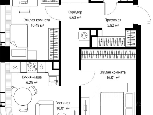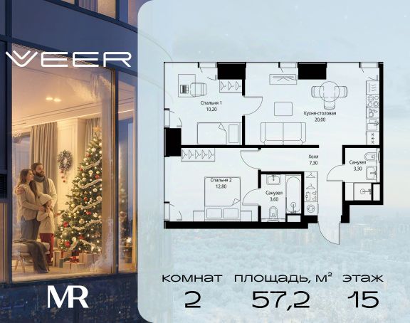 Прямая продажа от застройщика. Продаётся 2-комнатная квартира общей площадью 64.30 м² без отделки в ЖК VEER на 15-м этаже 59 этажного дома. Жилой комплекс бизнес-класса VEER от компании MR — это футуристичный мультиквартал, расположенный в престижной локации на западе Москвы. Благодаря переменной высоте башен — двух 22-этажных, 46-этажной и двух 59-этажных — возникает динамичность в силуэте комплекса, а его яркий образ вносит разноплановость в архитектурный пейзаж района. Расположение и транспортная доступность: • VEER удобно расположен в непосредственной близости от Кутузовского проспекта, обеспечивая быстрый доступ к центральным районам Москвы • Комплекс находится непосредственно напротив самого большого природного заказника в Москве - парка "Долина реки Сетунь", а за семь минут можно доехать до памятника садово-паркового искусства, Троекуровского леса. • Всего в 15 минутах - центр города, самая престижная бизнес-школа управления России "Сколково", дом творчества "Переделкино". • 18 минут пешком до м. "Давыдково" • Открытие новых станций метро в шаговой доступности в будущем Инфраструктура: Разнообразить свой день резиденты VEER смогут также проводя больше времени на свежем воздухе. Двор разделен на 4 зоны разных эмоций и действий, которые пересечены и соединены веерными прогулочными маршрутами: • Спортивная площадка устроена в глубине "Кленовой рощи" • В "Чайном домике" будет создан навес с утеплением для отдыха в любую погоду • Площадки для детей воплотятся в "Волшебный лес" с цветами, зеркалами и световым дизайном • "Центральная площадь" устроена у водного оазиса живописного пруда. Компания MR предлагает своим клиентам специальные условия приобретения квартир в рамках программ ипотечного кредитования от банков-партнеров.