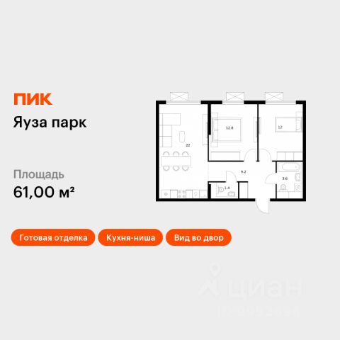 Прямая продажа от девелопера. В жилом квартале комфорт-класса "Новое Пушкино" (девелопер Ingrad) продаётся 2-спальная квартира площадью 56.10 кв.м без отделки. Квартира расположена на 15 этаже 15-этажного дома, корпус 20. Расположение и окружение: Жилой квартал "Новое Пушкино" расположен в экологичном городе Пушкино. Рядом с кварталами расположены: Северный лесопарк - 650 м, пушкинский ЦПКиО - 1 км, дендрарий - 1 км, ферма-экопарк "Птичник" - 1,2 км, парк "Серебрянка" вдоль одноимённой реки - 3,5 км. В окрестностях есть большие водоёмы и лесные массивы, где можно загорать, плавать и наслаждаться пикником на берегу. Отличная транспортная доступность: До Ярославского шоссе, по которому можно добраться до МКАД, всего 3 км. Важным пунктом развития инфраструктуры станет строительство Мытищинской хорды (Северного дублёра МКАД). Железнодорожные станции Заветы Ильича и Пушкино расположены в 1,5 км и 3 км.. Инфраструктура: "Новое Пушкино" - новый "5-минутный город" с собственной развитой инфраструктурой, где всё необходимое находится в пределах пяти минут пешей прогулки. Район уже полностью сложился: социальные и сервисные объекты функционируют, обеспечивая жителям высокий уровень комфорта и удобства. В нём уже построено 29 домов, работают два детских сада и школа. Свой прогулочный бульвар протяжённостью более 500 м располагает пространствами для отдыха, занятий спортом и встреч с друзьями. Здесь есть велосипедные дорожки, воркаут-зоны, теннисные столы и детские площадки. На первых этажах домов открыты кафе, магазины и сервисы, которые упрощают повседневные дела. Запланировано строительство торгового центра.