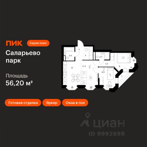 Продаётся 2-комн. квартира площадью 64,4 кв.м на 15 этаже 16 этажного дома (Корпус 57.1, Секция 1) проекта ПИК Саларьево парк. Светлый просторный подъезд на уровне земли, функциональная планировка, большие окна, предчистовая отделка. Жилой район "Саларьево парк" расположен в Новой Москве, в четырёх километрах от МКАД по Киевскому шоссе. Две станции метро: "Саларьево" и "Филатов луг", — находятся в пешей доступности от проекта. Дойти до них можно за 510 минут. В квартале уже создана качественная среда, где есть абсолютно всё для полноценной жизни, работы и отдыха. Благодаря удобному расположению проекта всё важное будет рядом: детские сады, школы, кафе и рестораны, шопинг в торговых центрах, фитнес и даже аэропорт. Все корпуса в квартале гармонично сочетаются, образуя единую городскую среду. Между собой их объединяет невысокая этажность и натуральная цветовая гамма. Здесь приятно гулять и проводить время на улице всей семьёй. В "Саларьево парке" создана уникальная образовательная среда, включающая в себя шесть школ, рассчитанных на 6 250 учеников. Две из них уже открыты, их посещает 2 300 детей. Также на территории "Саларьево парка" находится 12 детских садов, один из которых с бассейном. Сейчас уже открыты 7 садов. В "Саларьево парке" открыта уникальная игровая площадка — PlayHub "Оригами". Здесь есть ручей, горка-труба и рельефные холмы. Взрослые смогут отдохнуть в уютном кафе, пока дети играют. Также на территории проекта есть SportHub — большая спортивная зона, разделённая по интересам и возрастам. Здесь можно заниматься разными видами спорта: футболом, баскетболом, волейболом и стритболом. Зимой центральную часть площадки превращают в каток. Во дворах-парках жилого квартала есть места для отдыха, детские и спортивные площадки. На первых этажах домов расположены магазины, кафе и полезные сервисы. Также вблизи проекта есть несколько масштабных торговых центров. До ТЦ "Саларис" пять минут пешком, до "Рио", Metro Cash & Carry и "Леруа Мерлен" — пять минут на автомобиле. Артикул 1019136 (Застройщик ООО "Специализированный Застройщик "Тирон")