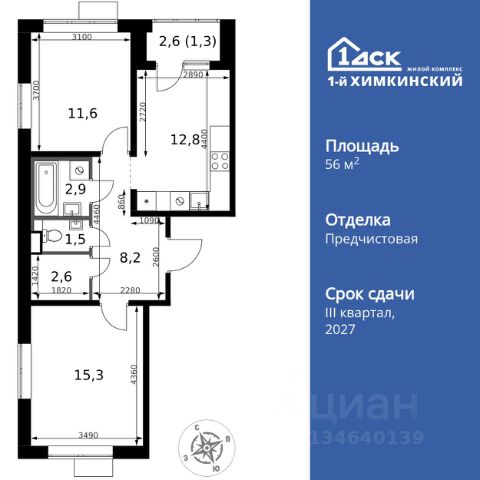 Прямая продажа от застройщика! Жилой Комплекс класса Комфорт. Продаётся 2-к квартира номер 193 общей площадью 48.4 кв.м. на 15-м этаже 17 этажного здания. Отделка Whitebox. Цена с учётом скидки. Особенности квартиры: - Угловая планировка - больше пространства для ваших идей. - Окно в ванной - натуральное освещение для уюта и комфорта. - Увеличенное количество окон - дополнительное освещение и свежий воздух. - Раздельный санузел - больше удобства для всех членов семьи. - Евроформат - просторное и удобное жилье с отличной планировкой. - Гардеробная - удобство для хранения и организации вещей. - Ниша под шкаф - компактное и удобное место для вещей. - Просторная лоджия - идеальное место для уютных вечеров. Квартира с предчистовой отделкой (White box). Вам не придется заниматься черновыми и трудоёмкими работы, а чистовую отделку и дизайн - сделайте на свой вкус. Информация о комплексе: Квартал класса комфорт плюс, где современное городское пространство граничит с удивительной природой вокруг. 1-й Химкинский расположен на территории в 102 га и органично вписан в природное окружение Химкинского леса и канала им. Москвы. В проекте предусмотрена богатая коммерческая инфраструктура с собственным торговым центром, общеобразовательные учреждения и социальные объекты. Изюминкой жилого комплекса будут спортивно-оздоровительный комплекс с термами и SPA и семейный парк развлечений. Транспортная доступность: ЖК "1-й Химкинский" дает возможность выбрать любой способ передвижения как до города, так и до самых разных объектов, которые могут представлять интерес для его жителей. Не важно, какой способ передвижения вы предпочитаете, успевать всегда и везде можно вне зависимости от выбора транспорта. - 8 мин. пешком (800 м) до остановки "Золотая Арка" -10 мин пешком (1 км) до остановки "Поворот на Ивакино" Внутренняя инфраструктура: - Безопасность: закрытые дворы без машин, безбарьерная среда и сквозные подъезды, камеры на детских площадках с возможностью трансляции на смартфоне - Идеальный отдых в кругу семьи: семейный парк развлечений на территории, торговый центр (2-х этажный) общей площадью более 8 тыс. кв. м с фудкортом - Образование: 3 детских сада и современная муниципальная школа на 2450 мест - Спортивная среда: закольцованный веломаршрут с навигацией, спортивный комплекс с термами, закрытый тренажерный зал и зоны ворк-аута - Социальные объекты: поликлиника со станцией скорой помощи, пожарное депо - Подземный паркинг и кладовые помещения на -1 этаже, станция техобслуживания и автомойка на территории