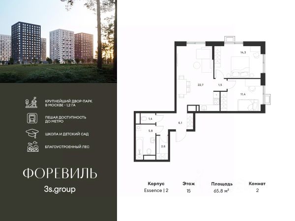 Продажа 2-комнатных квартир на 15 этаже рядом с метро Коммунарка
